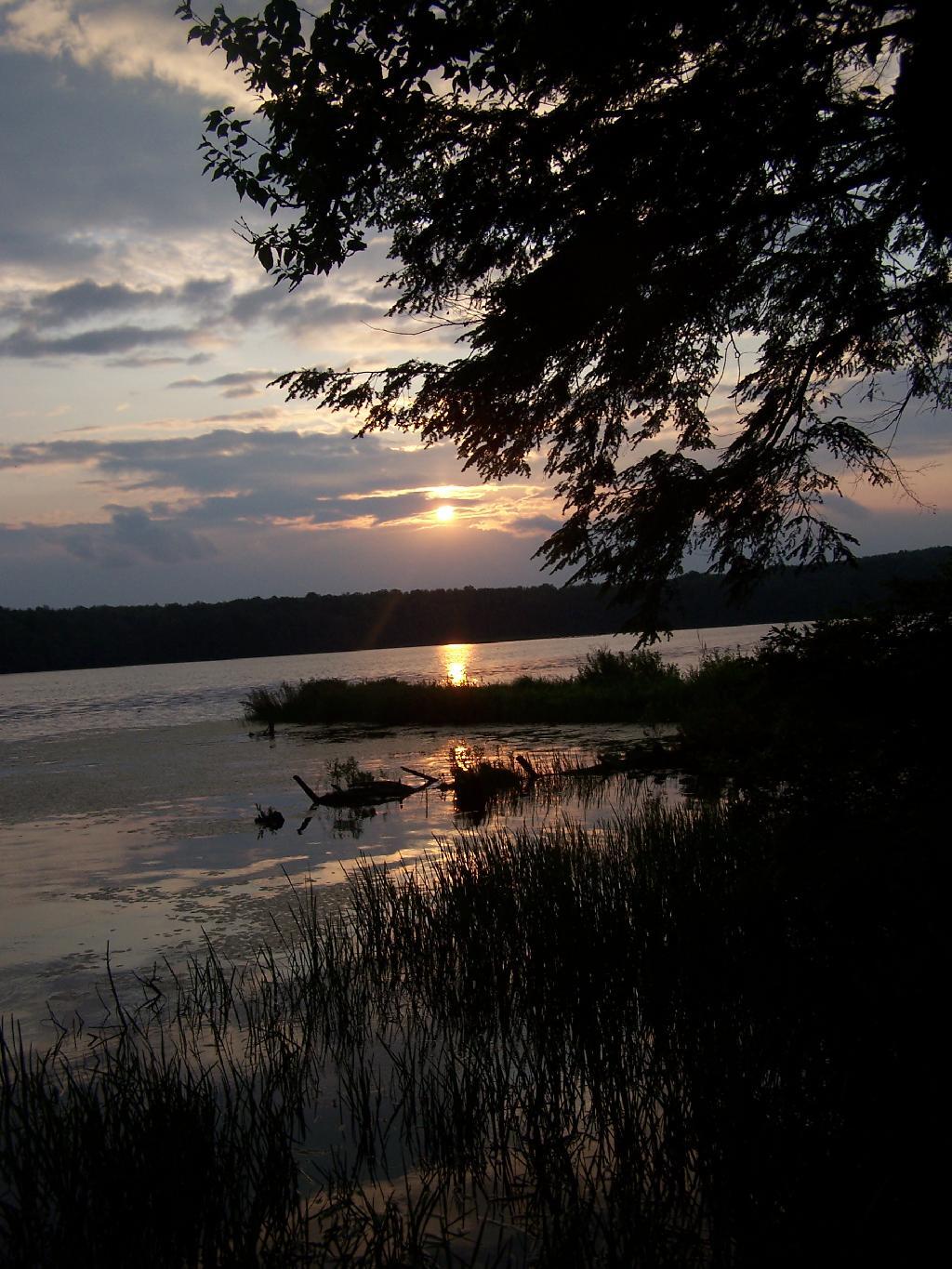 As the sun set, fog set in over the lake.