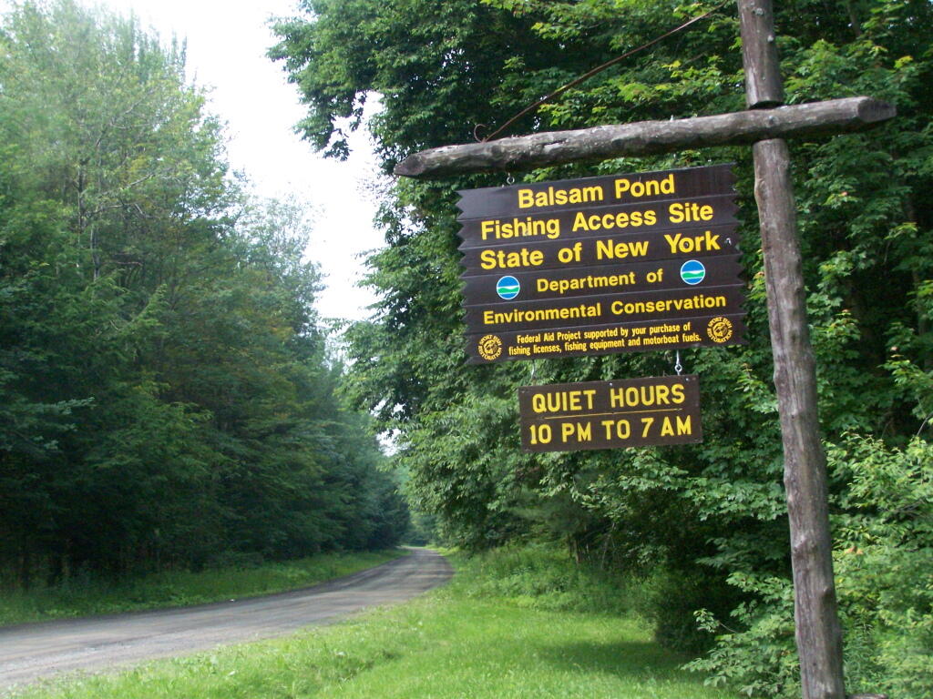 A small rustic camp ground is also located at Balsam Pond. Camping spaces are available at no cost on a first-come, first-serve basis and there is no running water or electricity. A fire ring, outhouse, and picnic table are provided for each camping space. A sign on Balsam-Tyler Road in Pharsalia designates the entrance to the boat launch and camping facility. This is a carry-in carry-out facility. Please do not litter.