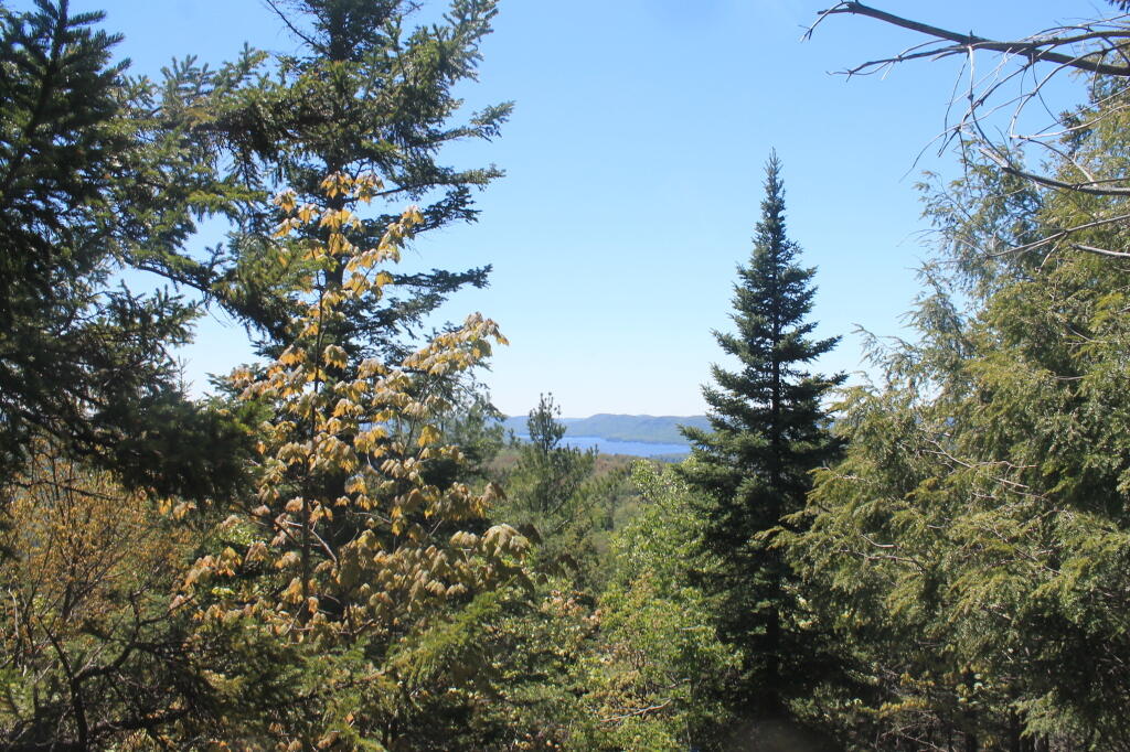 The trailhead for Black Bear Mountain is just off NY 28 between Inlet and Eagle Bay, north of Old Forge. It is also the trailhead for Rocky Mountain, a short steep climb to good views of the Inlet area of Fourth Lake. The trailhead parking appears to be on a short section of an old abandoned highway.