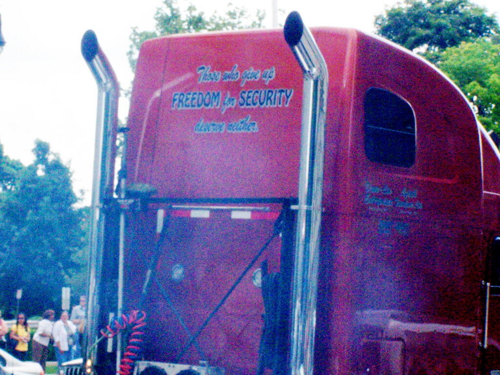 Freedom or Security Andy | May 15, 2008 "Those who give up freedom for security deserve neither." -- Slogan on Semi Thursday May 15, 2008 — Trucker Protest