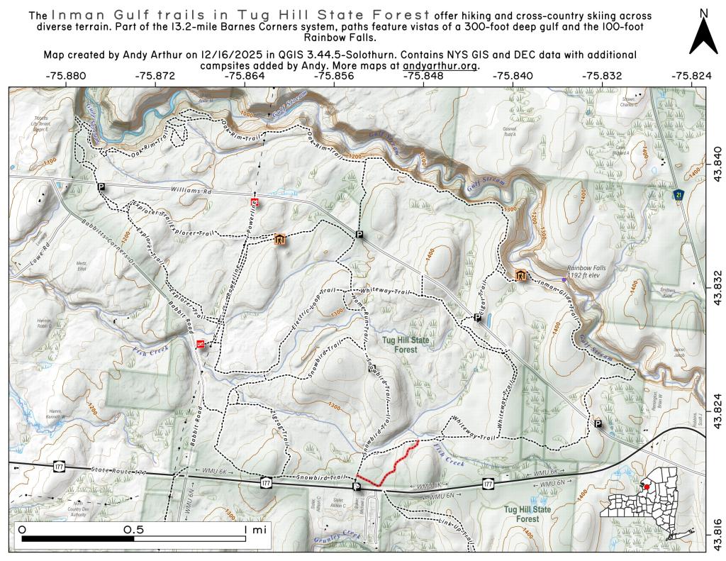 | Huckleberry North Trail | Huckleberry Brook Spur Road | Huckleberry Brook Road Parking Lot | 6 Vehicle Capacity | 1613 Huckleberry Brook Rd | Margaretville | NY | 12455 | 42.1130238724914 | -74.6515523618233 |