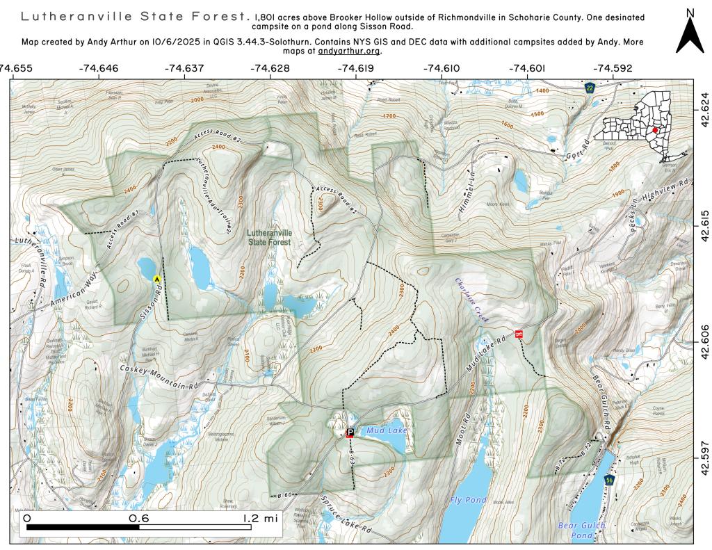 Primitive campsites are located at the Moscow Hill Assembly and Camping Areas, the Cherry Ridge Camping area, and other camping areas noted on the map. In these areas, camping is at designated sites only, except in the Moscow Hill Assembly area where there is room for RVs and trailers. Campsites feature picnic tables and fire pits. The Cherry Ridge camping area has potable water. Campsites are on a first come, first served basis. Lean-tos are also available for camping. See the map for locations. A permit (from the State Forest Ranger (315) 886-1669 is required for a party of 10 or more or if staying more than 3 nights.