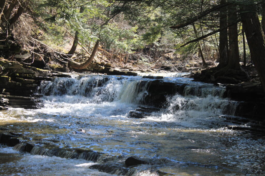A highlight of the Christman Sanctuary is the Bozenkill, with its 30-foot waterfall and numerous lesser cascades. Alternate layers of sandstone and shale are found in the large pool at the foot of the waterfall.