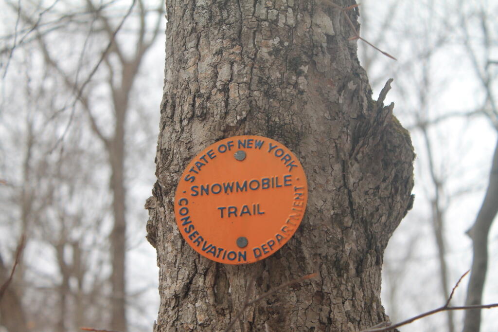 The trail starts off the shoulder of NY 8 and immediately passes a yellow gate. The rocky trail climbs gently 0.2 miles to a trail register and a junction. The Cod Pond Trail turns right here. The Oregon Trail continues straight, reaching a bridge over Stewart Creek at 0.8 miles, a place called North Bend at 2.9 miles and Baldwin Springs at 4.7 miles. We’ve heard that the bridge over Stewart Creek is worth checking out.