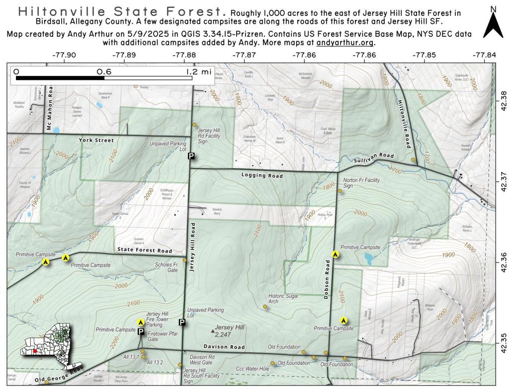 This past weekend I camped at the upper of these two campsites. It was a nice open field surrounded by white spruce. I hadn't ever been back to this campsite, but being sheltered from the wind with great views oft he stars, it is clearly now one of my favorite sites along NY 8. I have not explored the lower site but I confirmed it existed -- or at least the driveway exists to it -- when I was up that way this past weekend.