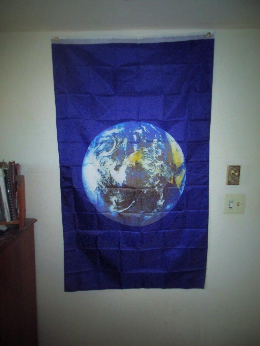 One of my new camp flags is this pretty Earth Flag. The screen print of the Blue Marble isn't perfect, but it still is a nice flag that was quite affordable.