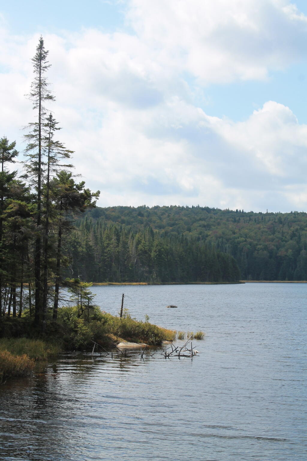 A less visited pond in the Moose River Plains complex, it is usually accessed from Indian Lake Road, one mile past the Otter Brook bridge, at the field where the Brookhouse Trailhead is. From there, you hike the Brookhouse Trail for 1.5 miles, which is an old logging road, before turning right at sign to Falls Pond. The Falls Pond trail is a bit rough to follow in parts, it crosses a stream and goes through some brambles, before you get to this delightful little wilderness lake.