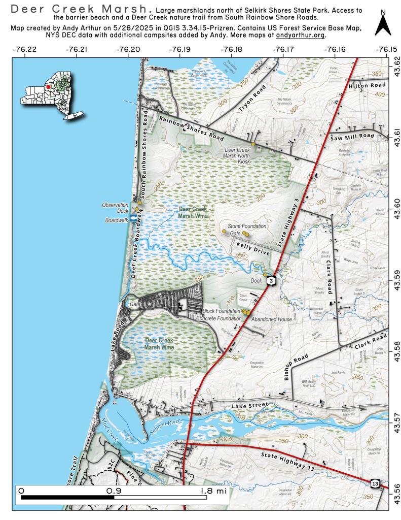 The Wild Forest accommodates 14.6 miles of hiking trails, along with an extensive 117-mile network of snowmobile trails (many of which are multi-use), catering to various recreational preferences. With 97 primitive campsites, a boat launch, and a boat dock, the area is well-equipped for adventurers. Furthermore, the public can access 10.95 miles of roads, granting motorized entry to this expansive and captivating property.