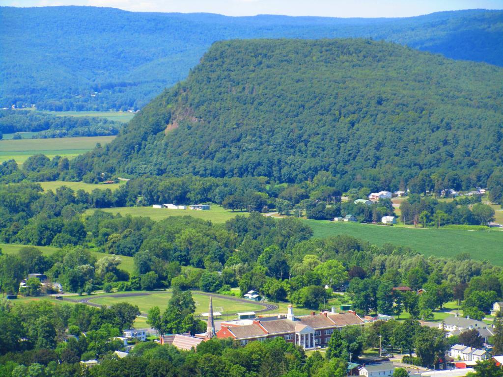 Directly to the East of Middleburgh there is a long narrow landform known as β€œThe Cliff”. It’s a 500 foot high hill, with about 40 feet high cliffs, overlooking Middleburgh and Schoharie to the west. Cotton Hill sits above it to the east. While privately owned, the Long Path crosses it and you can use it to explore the cliffs.