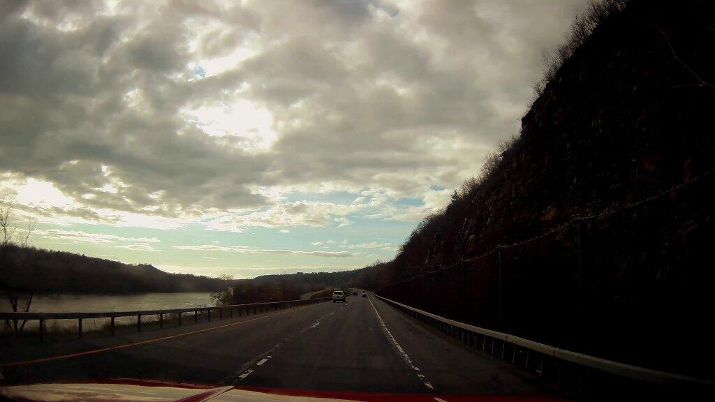 Heading up north, on NY 5 along the Mohawk River after a drizzly afternoon it started to clear.