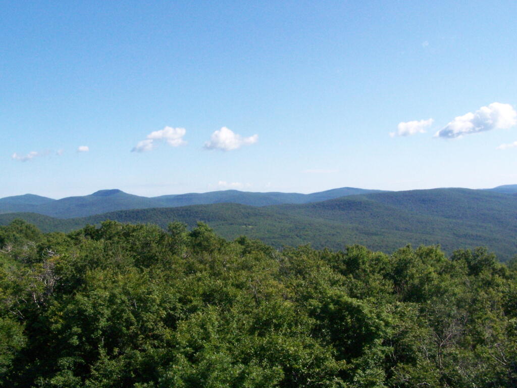 The Red Hill Fire Tower stands 60 feet tall, has nine flights of stairs, and was constructed in 1921. This tower affords an unsurpassed view of the Catskill high peaks to the west and north, and the Rondout Reservoir to the southeast. It was the last fire tower staffed in the Catskills, closing in 1990.