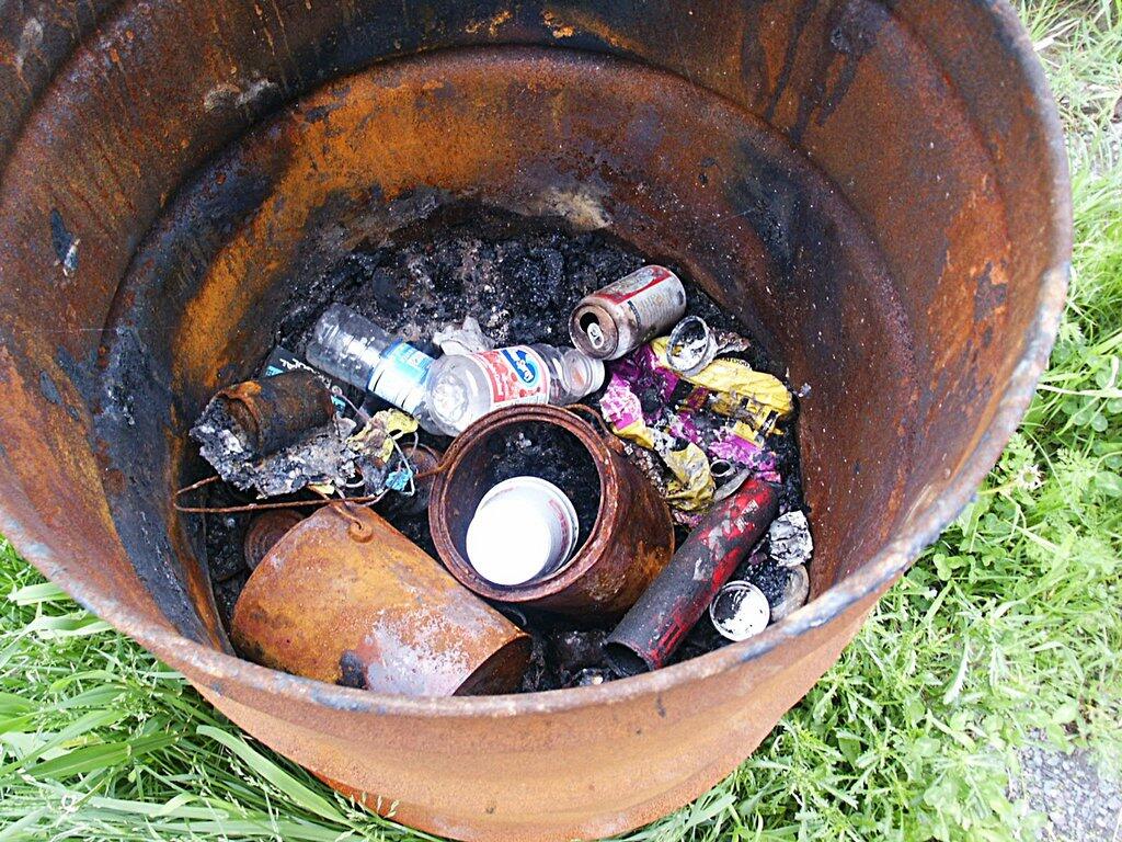 This picture is inside a burning barrel from a farm not too far from where I live. While these people are truly nice people, as you can see they don't recycle. But can you blame them?