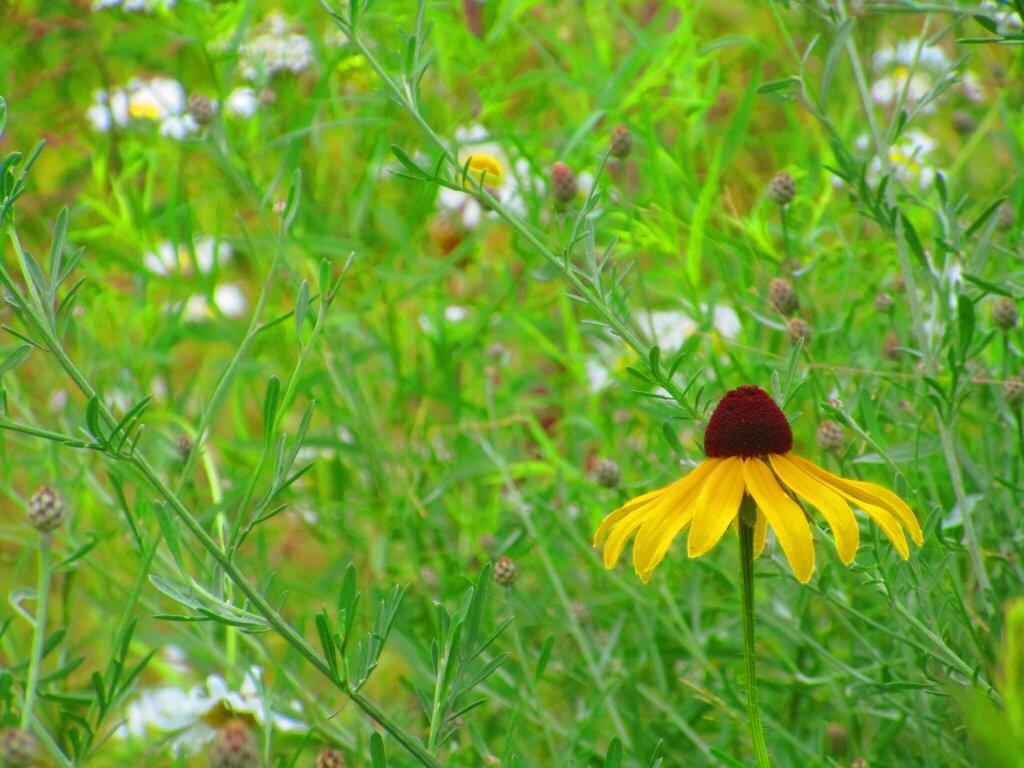 Black Eye Susan Andy | July 27, 2025 With leaves frooping down. Black Eye Susan droops down and looks up. Thursday July 23, 2020 — Spectulator