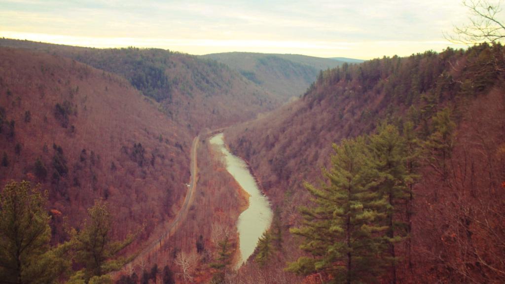 Deep in the Grand Canyon Gorge, although up here, the gore widens as Darling Run hits the Pine Creek Gorge, with Ansonia in the distance.