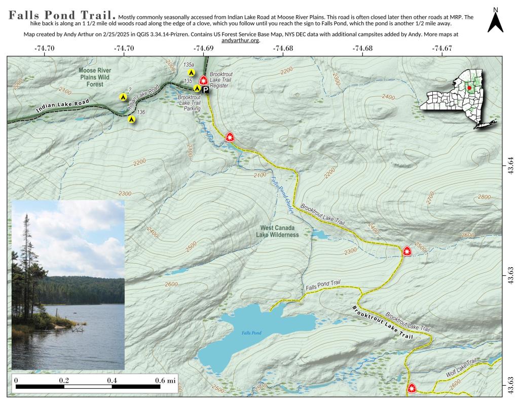 Wakely Pond (37 acres) lies on the far eastern edge of the Moose River Plains, roughly 1.5 miles east of Wakely Dam/Cedar River Entrance on Cedar River Road.