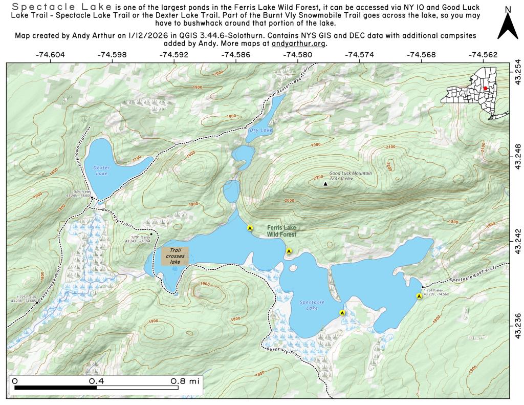 Deep Pond Trail is located off of the Brooktrout Lake Trail in Moose River Plainss (technically West Canada Lake Wilderness), and is a three mile hike back from Idnain Lake Road.