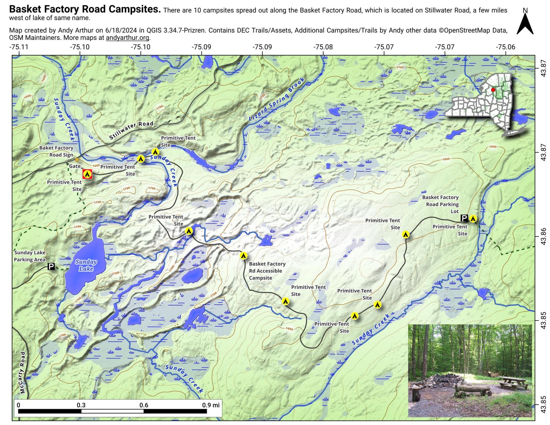 Interactive maps with backcountry and roadside camping: New York, Pennsylvania, West Virginia & Vermont. List of NYS DEC Lean-Tos and Firetowers.