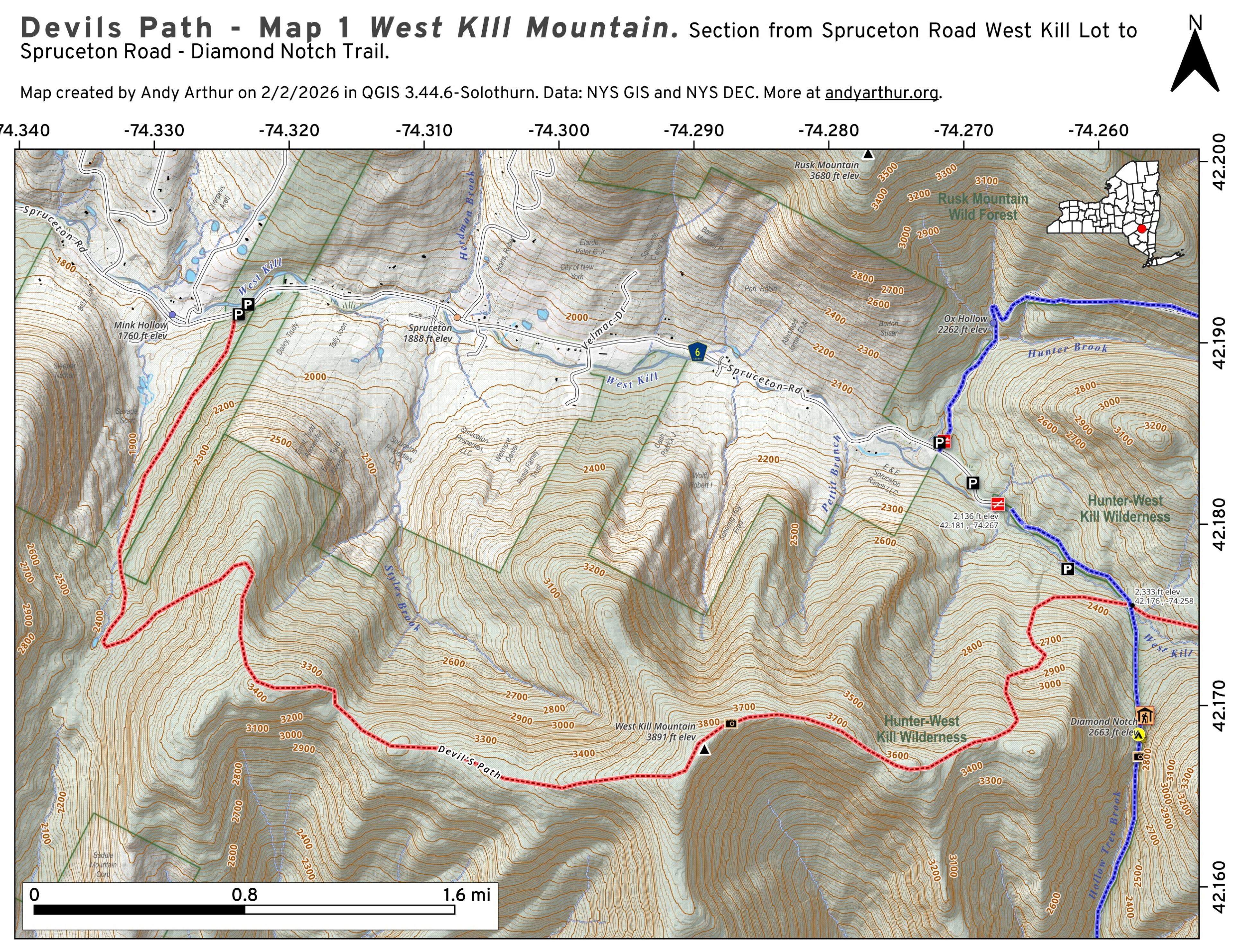 Devils Path – Map 1 West Kill Mountain