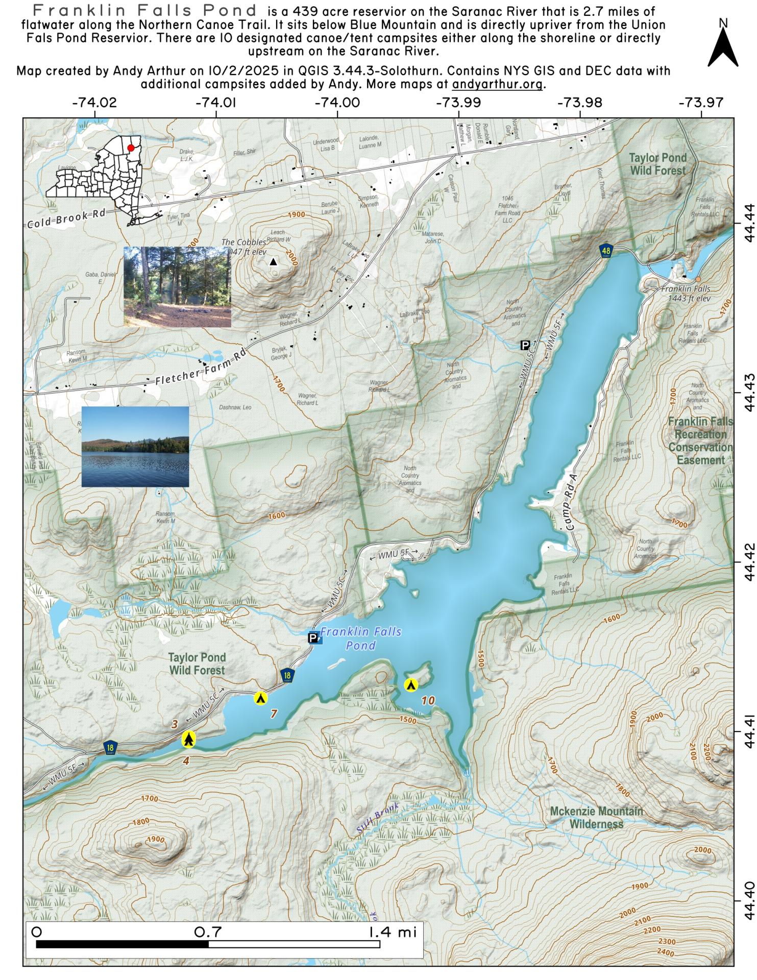 Campsite Coordinates for Bog River Flow / Lows Lake , Hudson River SMA (Buttermilk Falls), Lake Lila , Oswegathie River , Nine-Corner Lake , Pharaoh Lake Wilderness , Saranac River Campsites , Stillwater Lake , Schoharie County , and Sugar Hill State Forest .