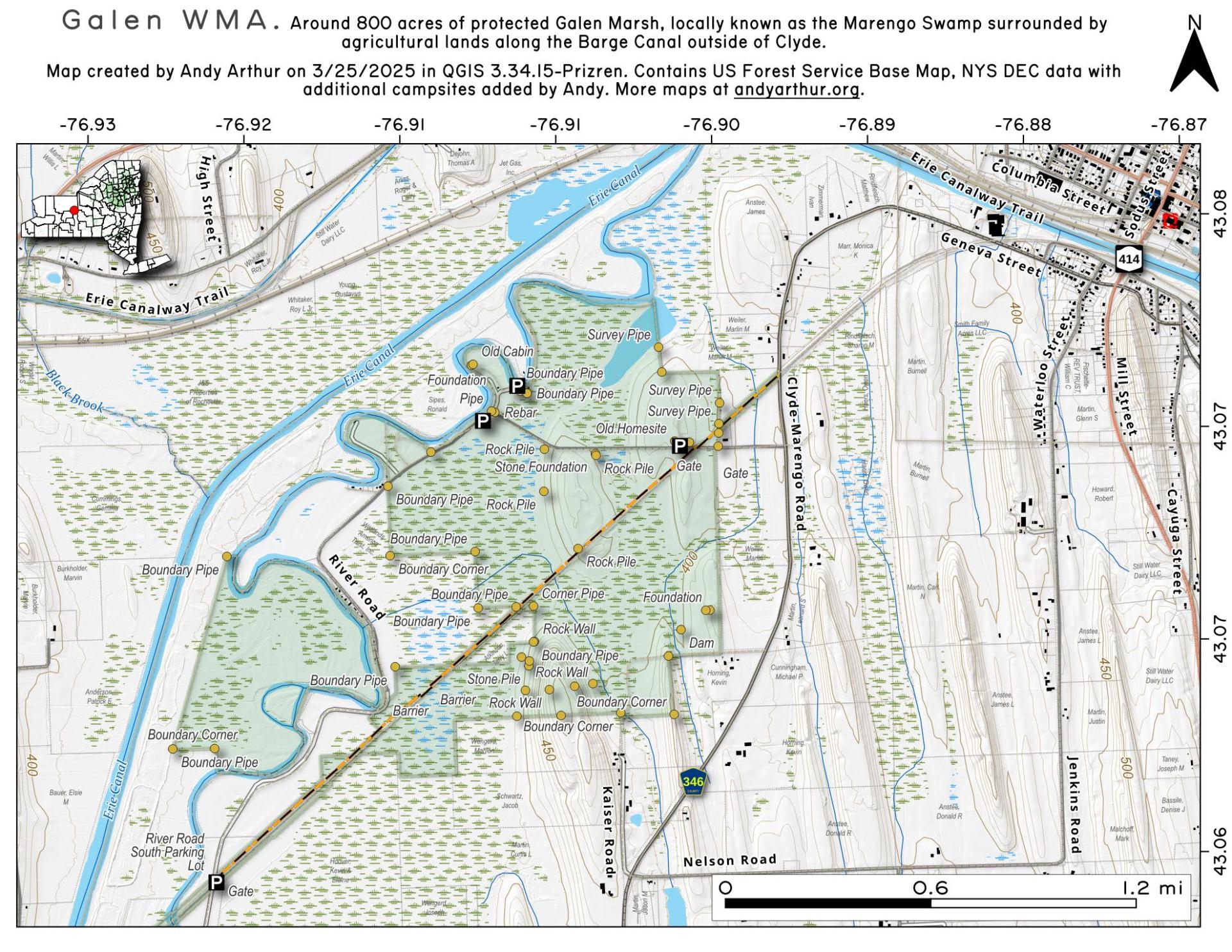 The management area provides protection to a portion of the larger Galen Marsh, locally known as the Marengo Swamp. Farming activities and the harvest of forest products have been the predominant human uses of the area since the settlement of the area, and remain to be viable land uses today. Some cottage development along the river, construction of the Barge Canal in the early 1800's and its subsequent use, and some drainage of the marsh has occurred in the past years. The area, because of its rich wildlife resources, has always been a popular hunting, fishing and trapping area, providing recreation, food, and fur to local residents and contributing to the local economy.