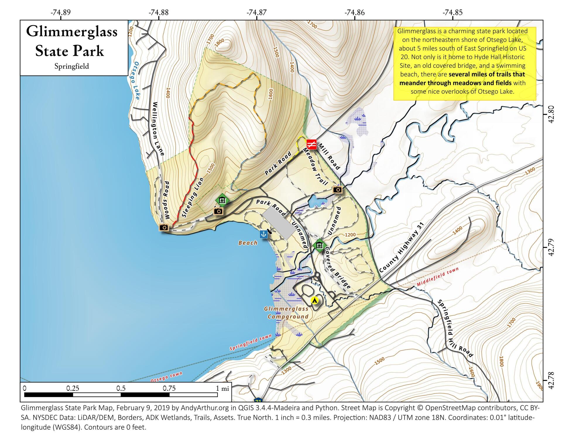 Interactive maps with backcountry and roadside camping: New York , Pennsylvania , West Virginia & Vermont .List of NYS DEC Lean-Tos with map coordinates. List of NYS DEC Firetowers with map coordinates and more information. Google Spreadsheet with Roadside, Primitive and Pay Campsites
