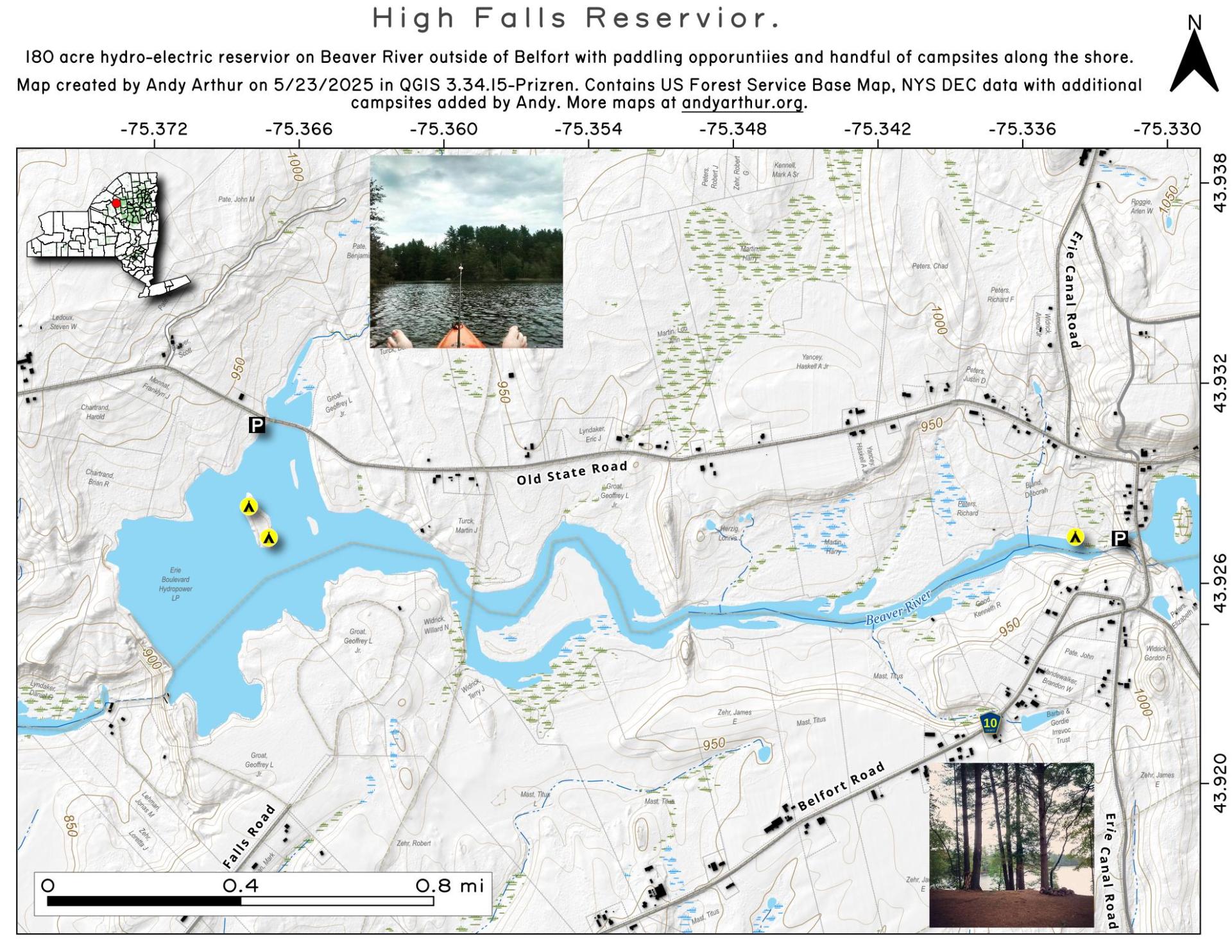 Interactive maps with backcountry and roadside camping: New York, Pennsylvania, West Virginia & Vermont. List of NYS DEC Lean-Tos and Firetowers.
