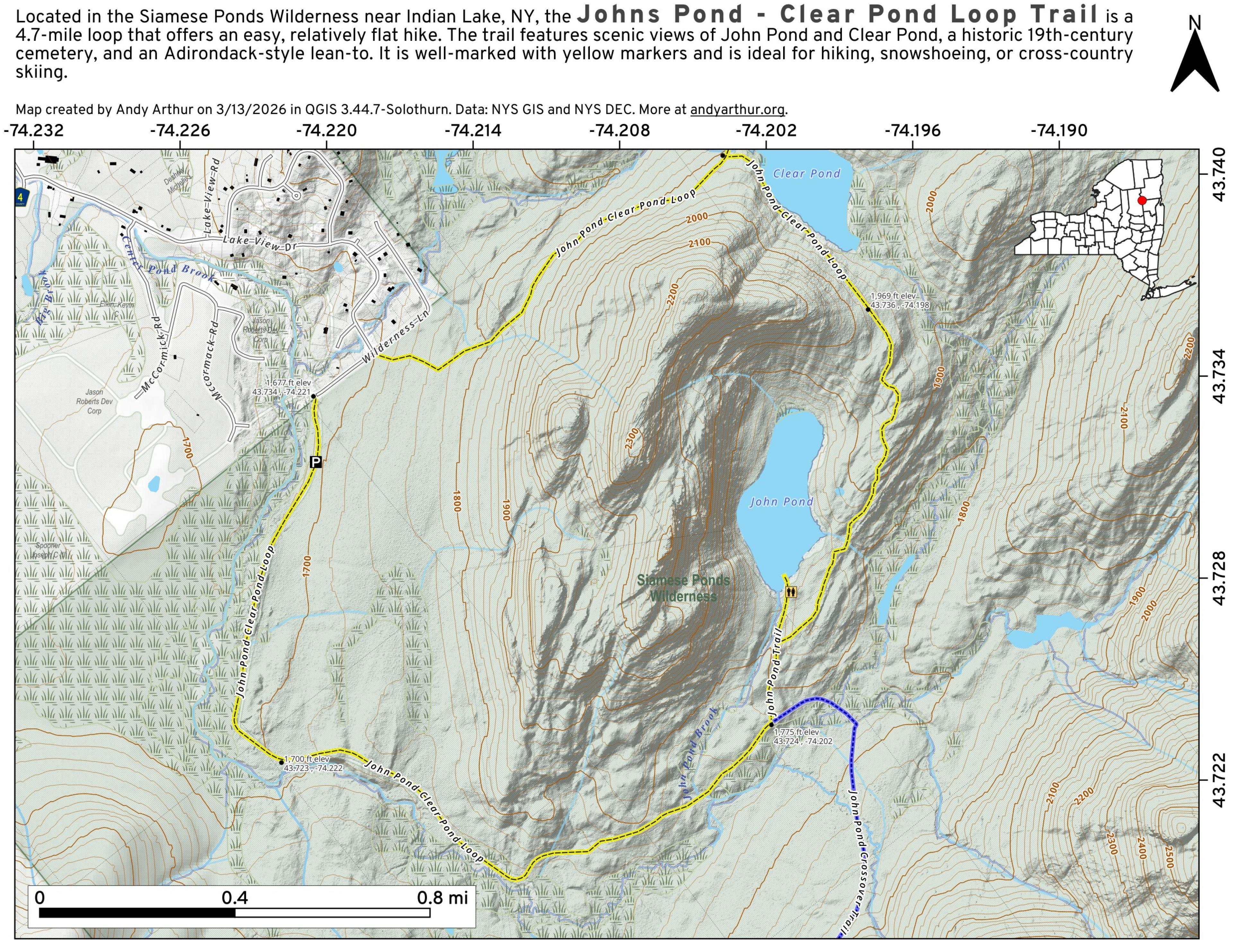 Word of warningβ¦ I hiked the βloop trailβ today (8/7/21) from Clear Lake to John Pond (lean to) then out to the trailhead & back to my carβ¦.I ACTUALLY WONDERED WHY NO ONE WAS AT THE LEAN TO OR ON THE TRAIL TODAYβ¦then I found outβ¦.from the lean to back to the road i encountered multiple areas of easily navigated blow down areas β¦but the worst part was when i was just 6 minutes from the road and ending my hike β¦there is one nasty beaver dam that has totally engulfed the trailβ¦for a good distance. I had to wade in Shin to knee deep muddy, murky beaver pond swill for a good distanceβ¦at one point i navigated the mud rim of this dam to avoid deeper water..it wasn’t pretty at all! Just be warned! Hip waders might be good to have for this part of John Pond trail..no kidding