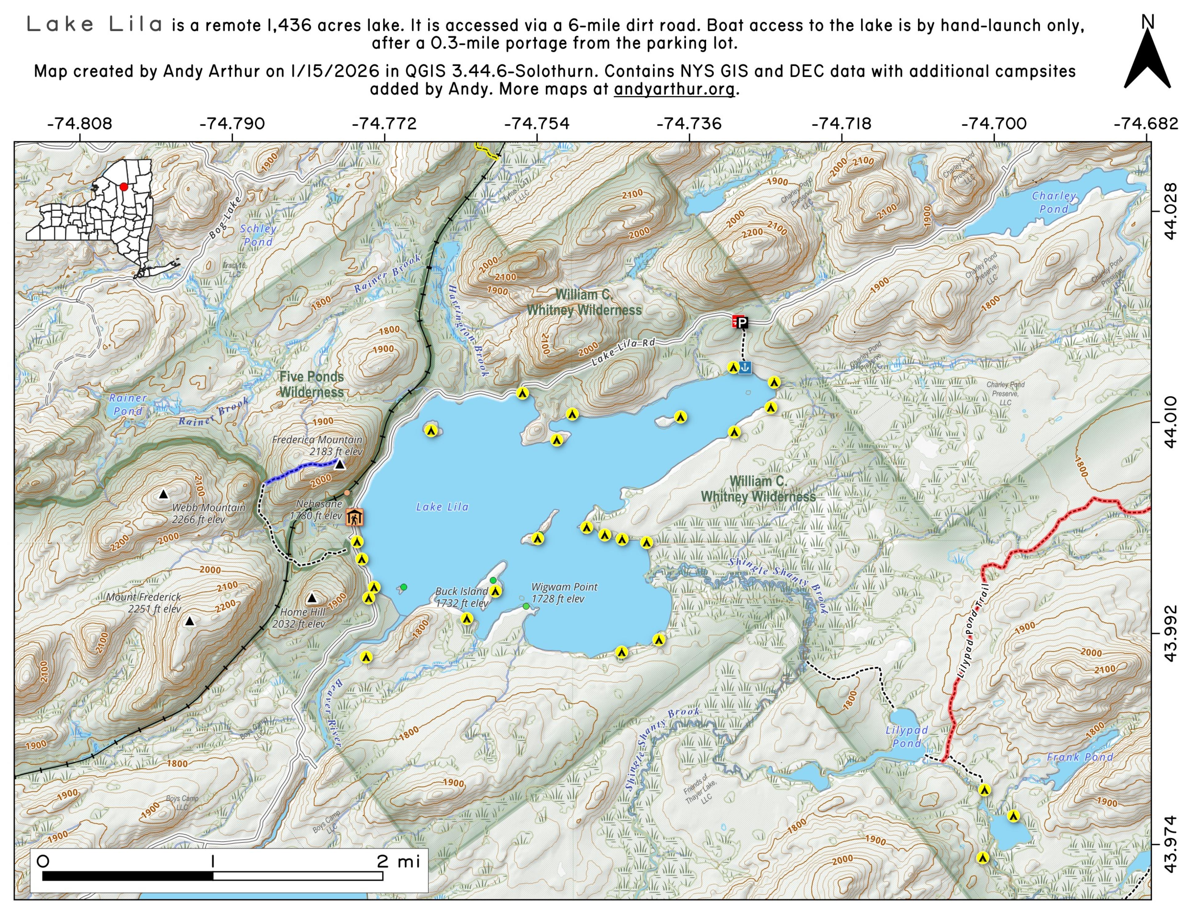 Campsite Coordinates for Bog River Flow / Lows Lake , Hudson River SMA (Buttermilk Falls), Lake Lila , Oswegathie River , Nine-Corner Lake , Pharaoh Lake Wilderness , Saranac River Campsites , Stillwater Lake , Schoharie County , and Sugar Hill State Forest .