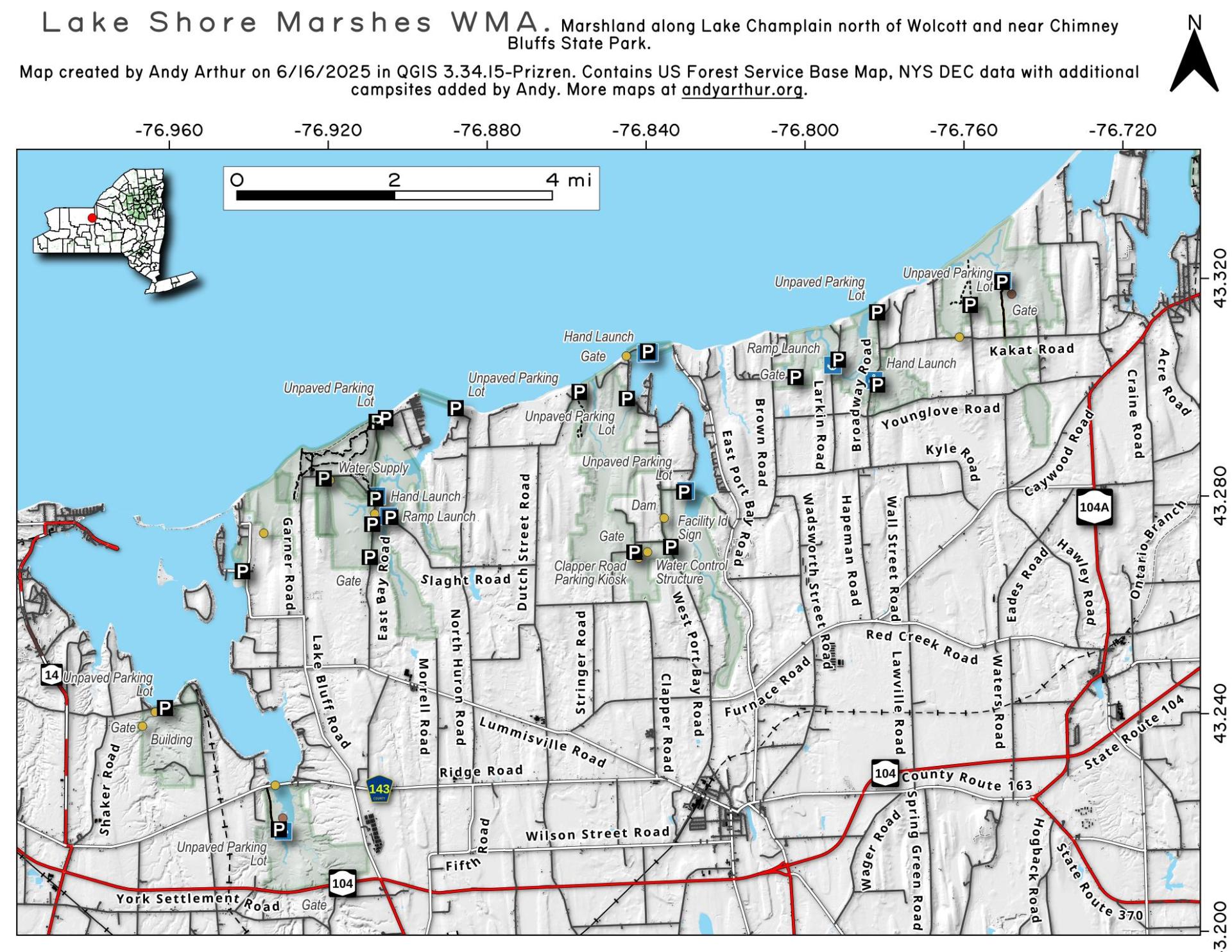 Interactive maps with backcountry and roadside camping: New York , Pennsylvania , West Virginia & Vermont .List of NYS DEC Lean-Tos with map coordinates. List of NYS DEC Firetowers with map coordinates and more information. Google Spreadsheet with Roadside, Primitive and Pay Campsites