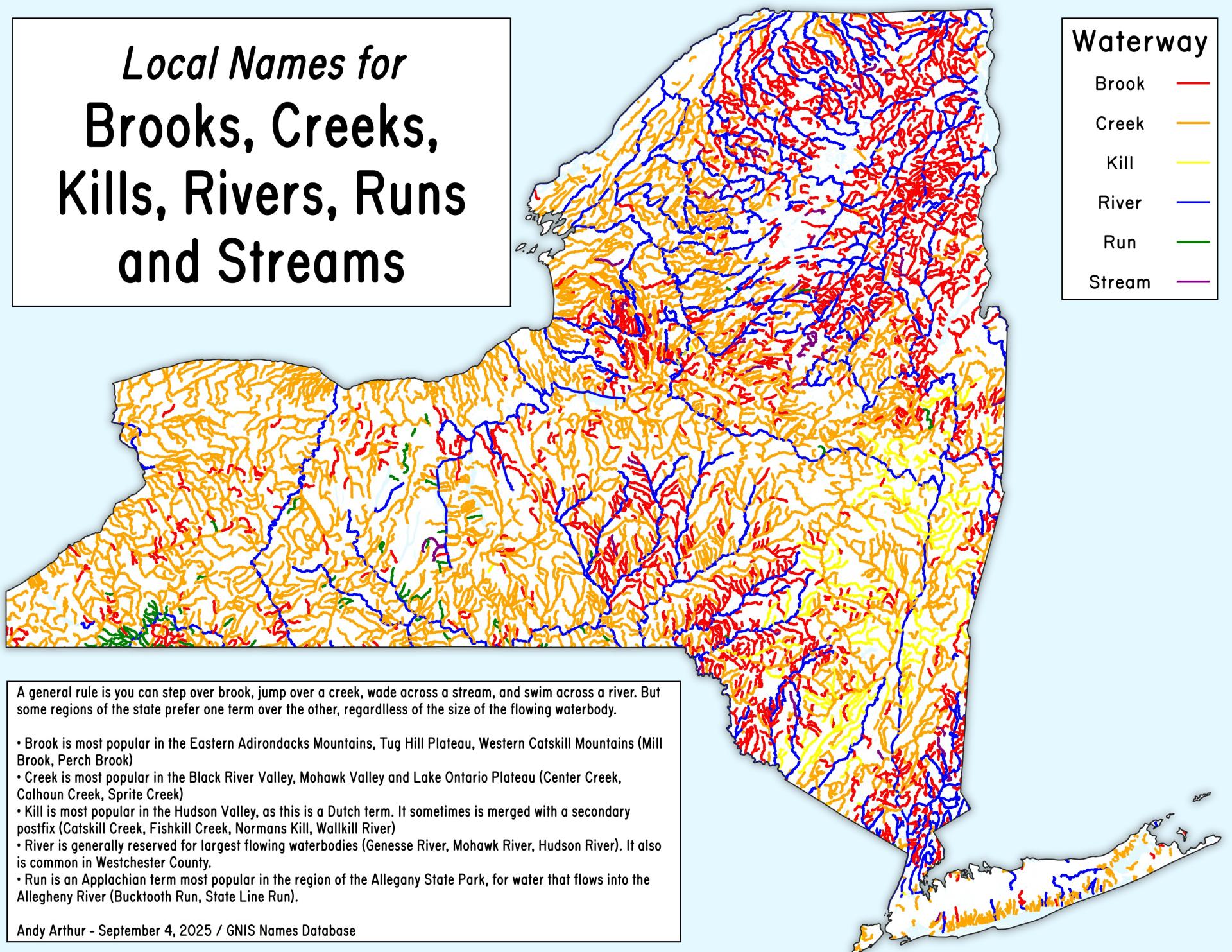 Map: Local Names for Brooks, Creeks, Kills, Rivers, Runs and Streams