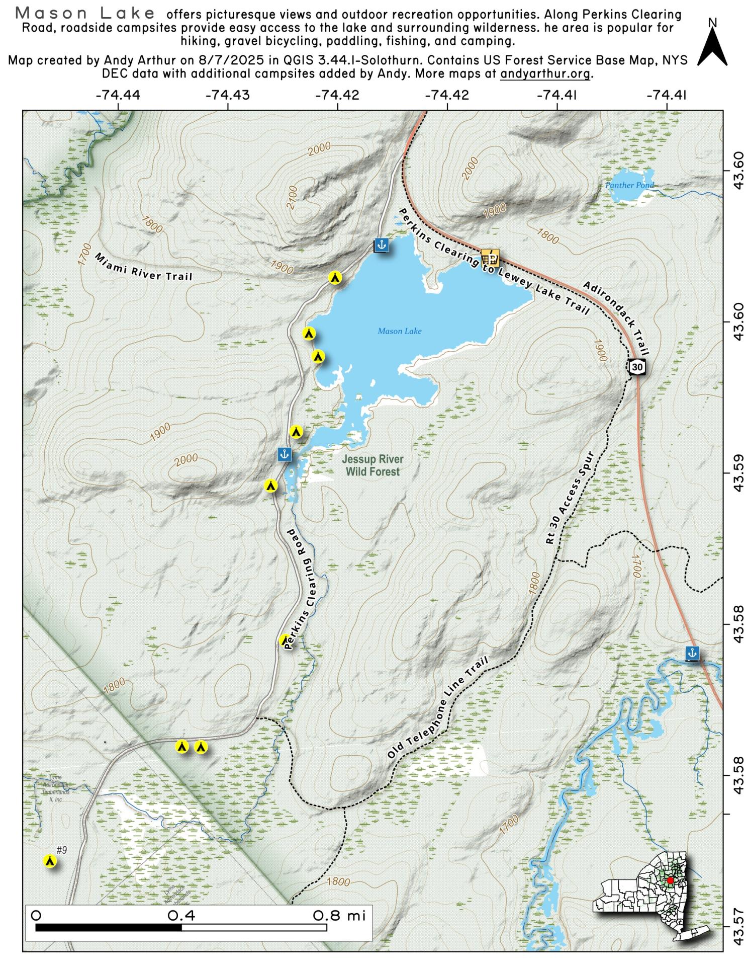 Interactive maps with backcountry and roadside camping: New York, Pennsylvania, West Virginia & Vermont. List of NYS DEC Lean-Tos and Firetowers.