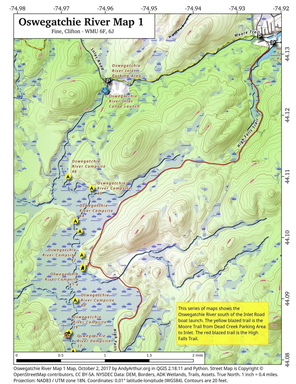 ... shows your location as a blue dot in relationship to campsites, trails, state land. This online map requires cell service, won't work in remote country, so also bring a paper map.