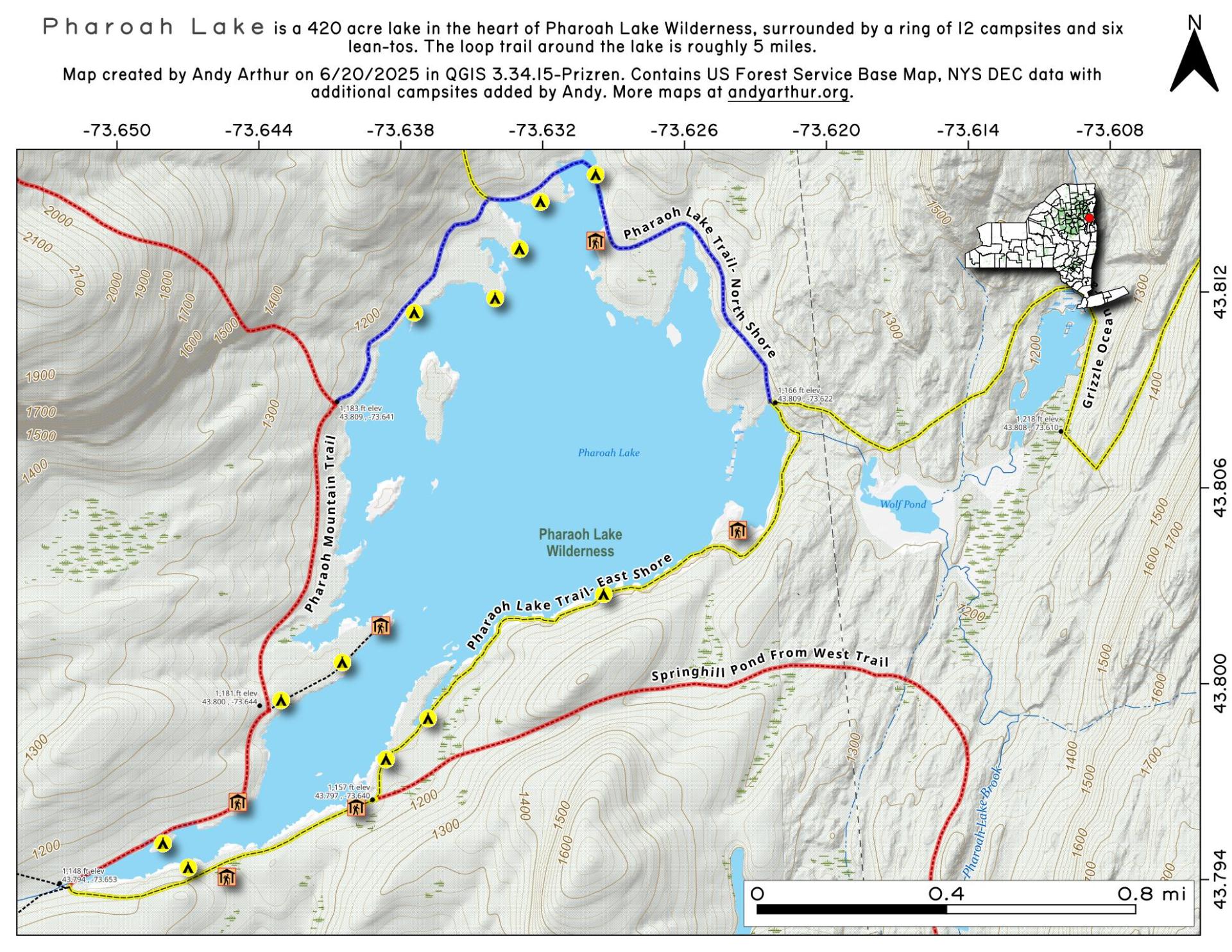 Pharaoh Lake is a 441 acre lake that is the center piece for the Pharaoh Lake Wilderness. It is ringed by several campsites and lean-tos and is a short but steep hike away from Pharaoh Lake Mountain, which has some of the best views in the Southeast Adirondacks.