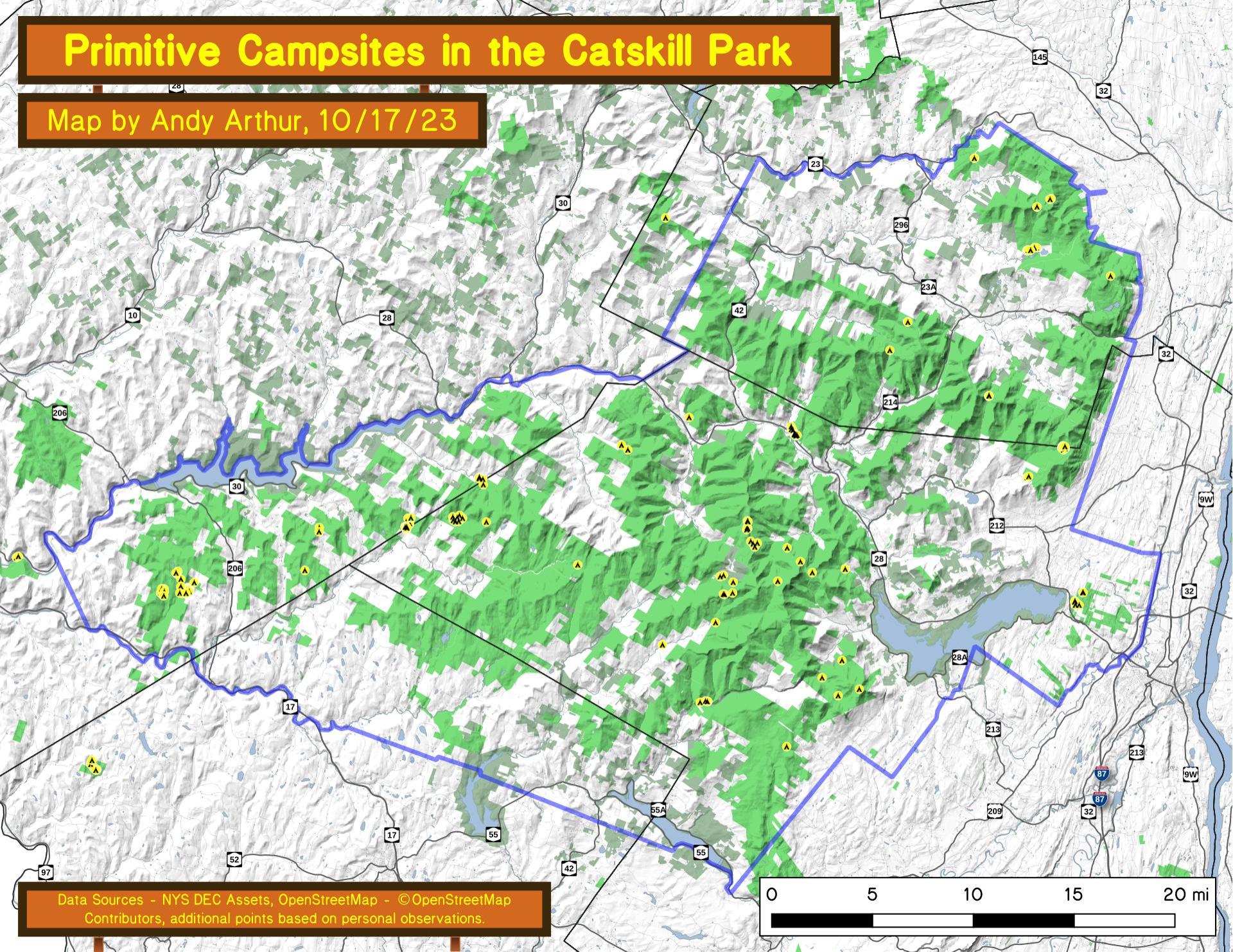Interactive maps with backcountry and roadside camping: New York , Pennsylvania , West Virginia & Vermont .List of NYS DEC Lean-Tos with map coordinates. List of NYS DEC Firetowers with map coordinates and more information. Google Spreadsheet with Roadside, Primitive and Pay Campsites