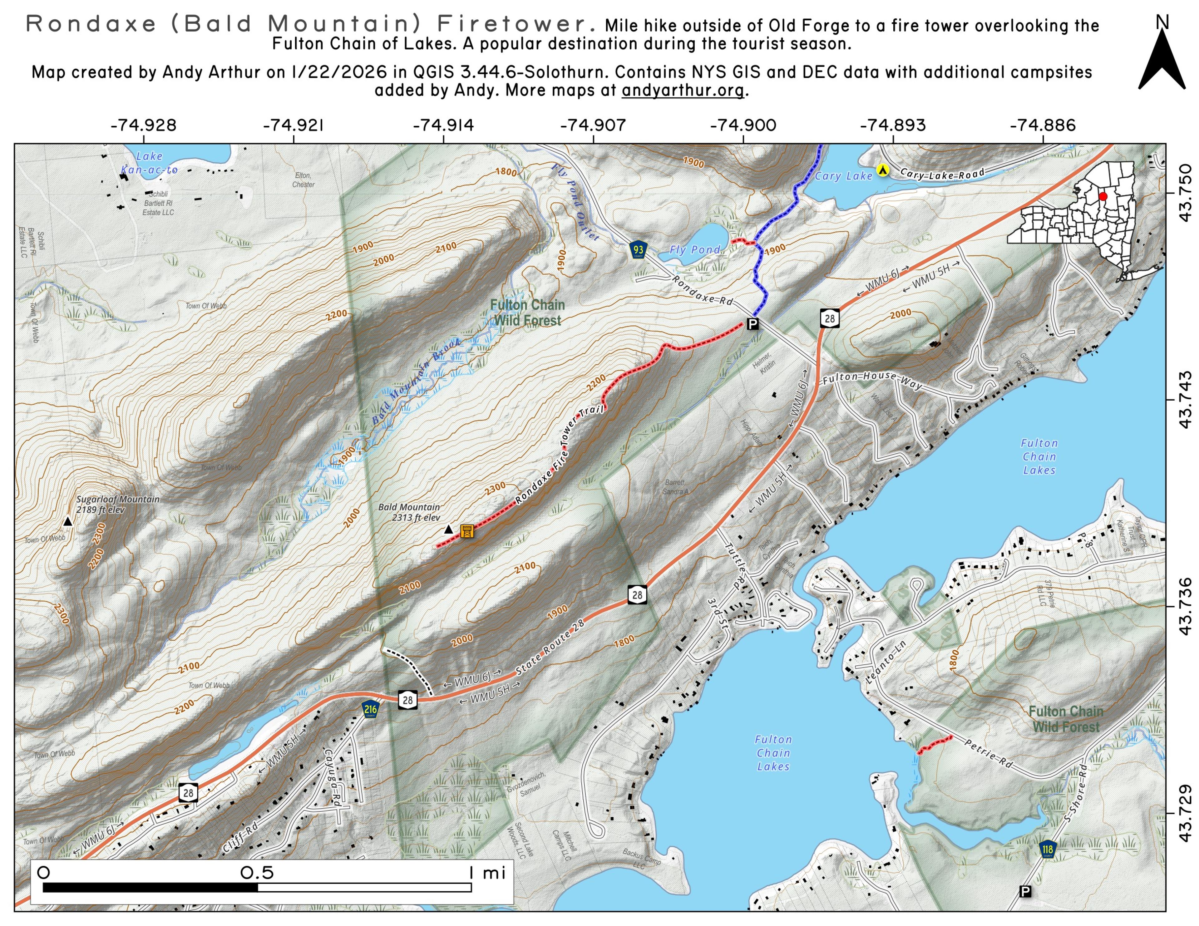 Bald Mountain is a small mountain located between Old Forge and Inlet in the western Adirondack Mountains. The trailhead is easily accessible from Route 28 and the while the hike is short, offers some great views of the surrounding mountains and the chain of lakes that Old Forge and Inlet sit on.