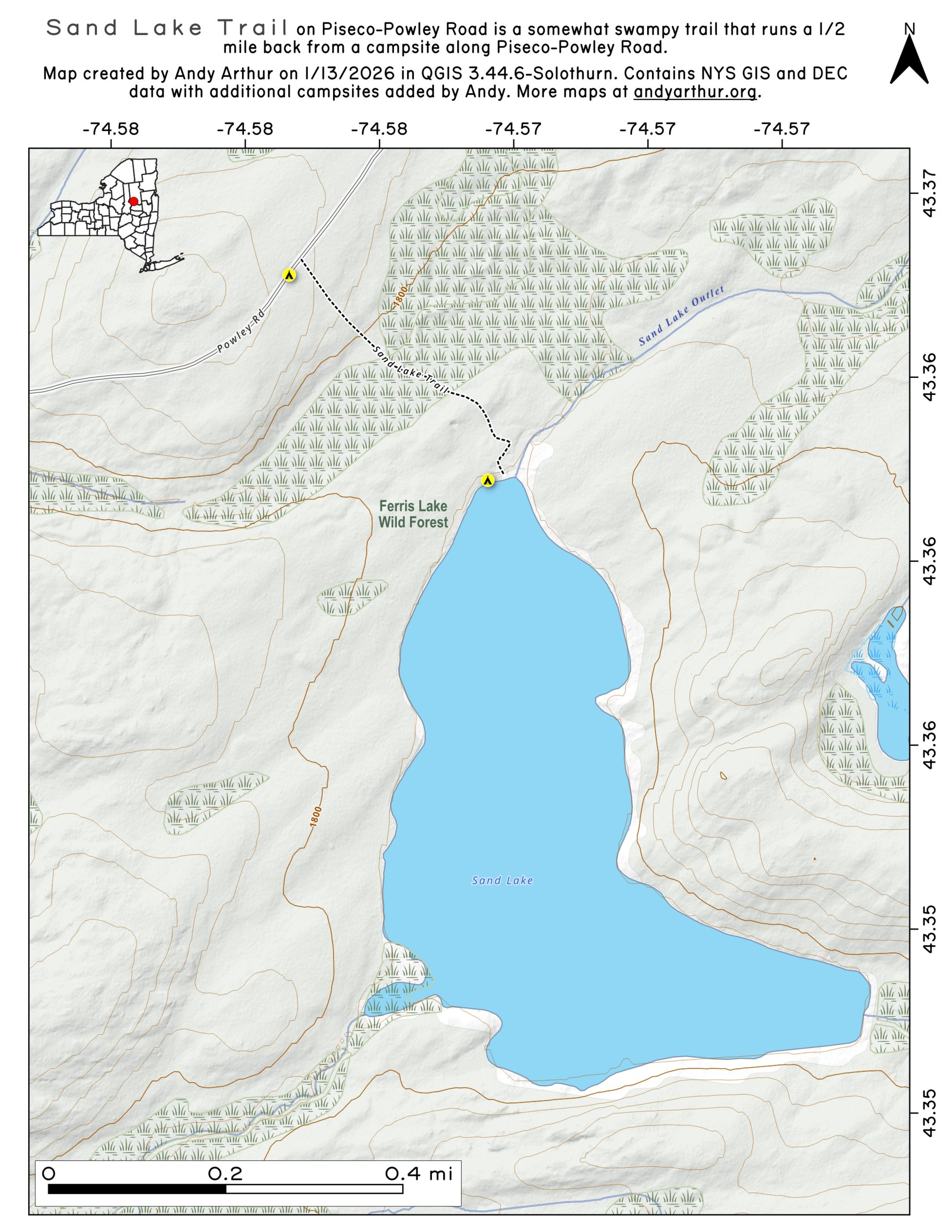 I think your thinking of a different Sand Lake, the one in Rensselaer County? http://mapper.acme.com/?ll=42.64379,-73.52110&z=17&t=M