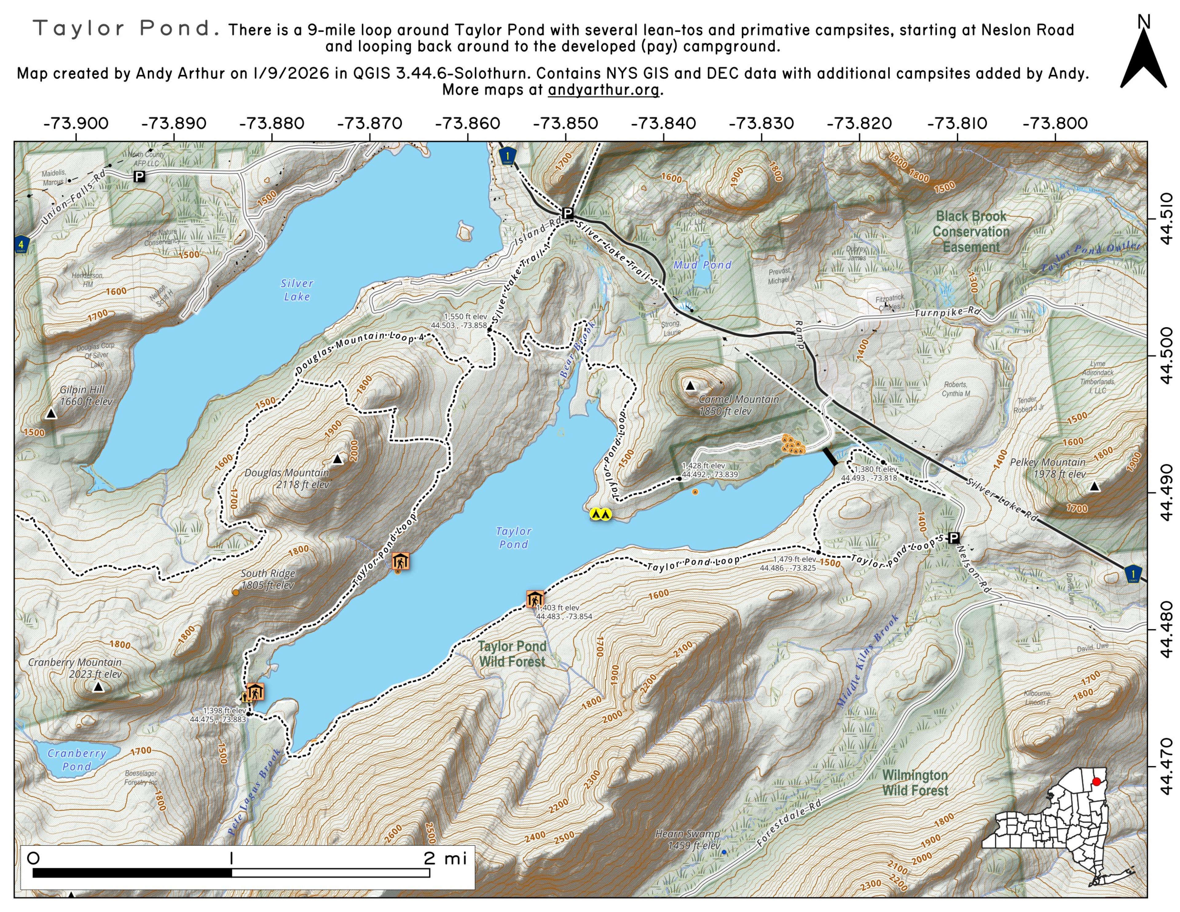 Do you know in which town the pond is located and this trail is located? Taylor Pond wild Forest? Thanks for any help