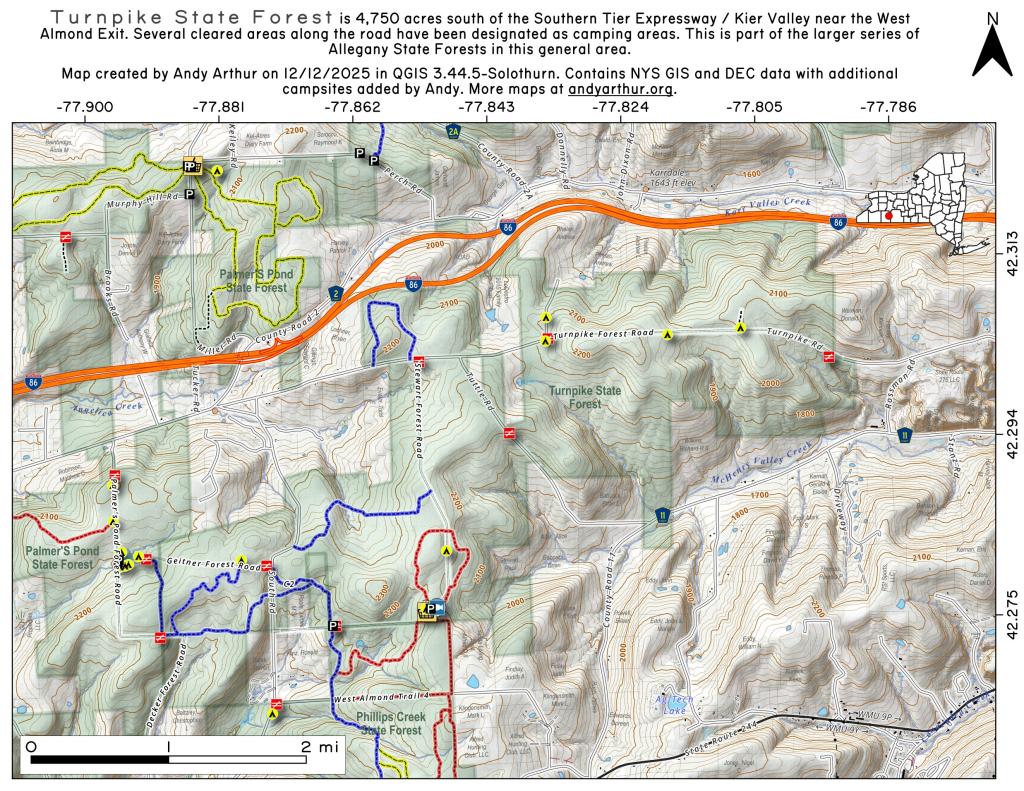 Interactive maps with backcountry and roadside camping: New York, Pennsylvania, West Virginia & Vermont. List of NYS DEC Lean-Tos and Firetowers.