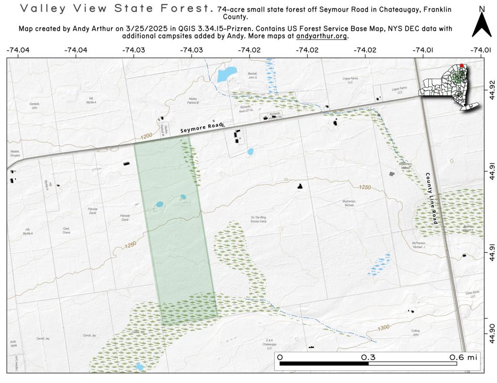 Valley View State Forest is a relatively small, isolated 75 acre piece of land dedicated to the state in Chateaugay, NY.