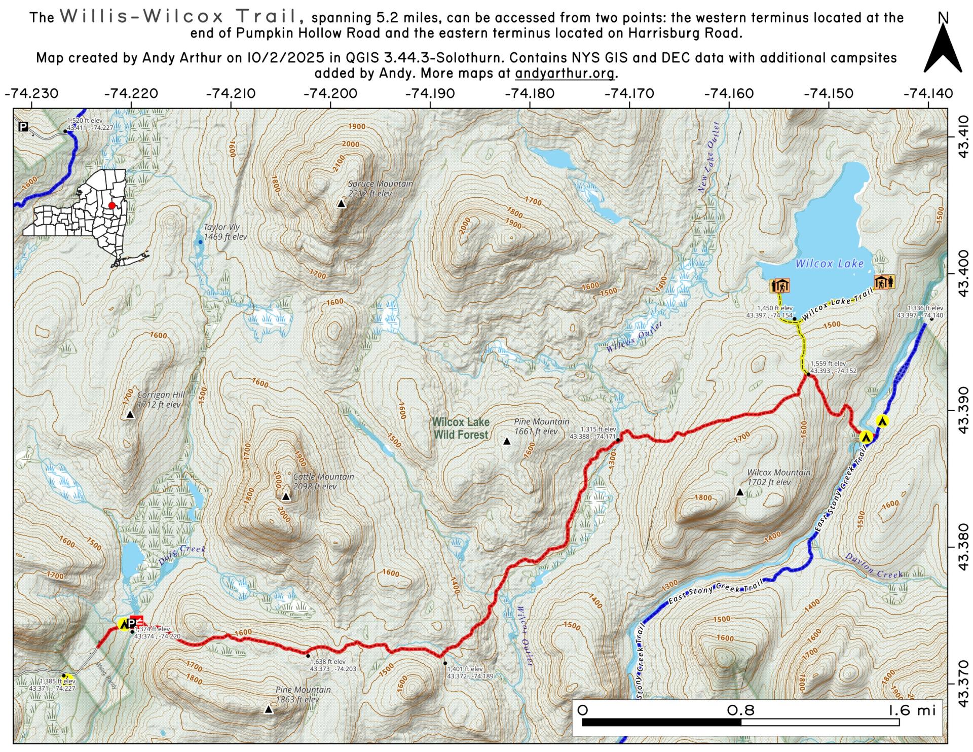 Interactive maps with backcountry and roadside camping: New York , Pennsylvania , West Virginia & Vermont .List of NYS DEC Lean-Tos with map coordinates. List of NYS DEC Firetowers with map coordinates and more information. Google Spreadsheet with Roadside, Primitive and Pay Campsites