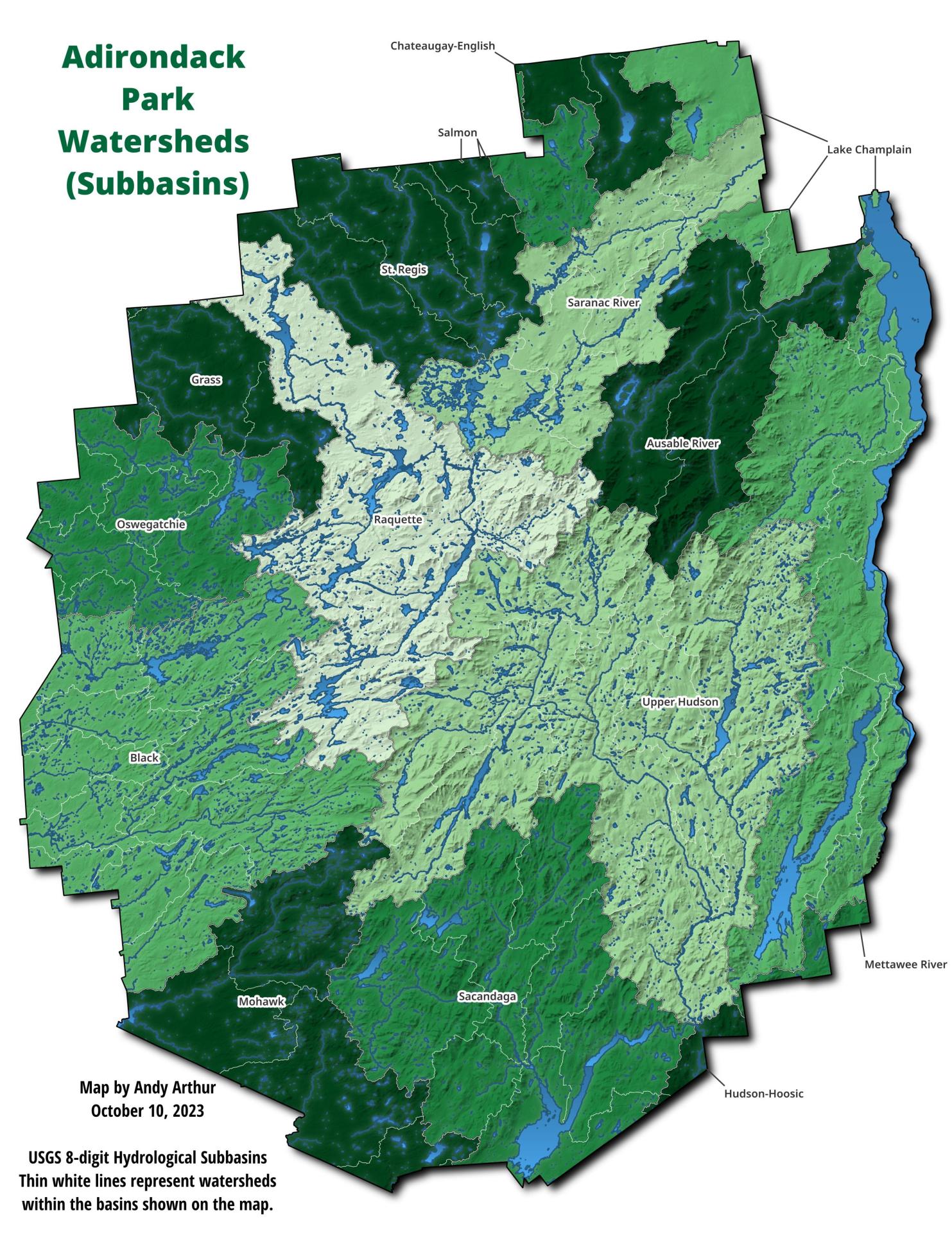Terrain Map: Adirondack Park Watershed - Subbasins Download a High Resolution JPEG Image of the Terrain Adirondack Park Watershed - Subbasins or an Adobe Acrobat Printable PDF of the Terrain Adirondack Park Watershed - Subbasins. More about Adirondack Mountains...Maps and InteractivesMODIS Aqua – September 28, 2023Jay Covered BridgeLevel 4 Ecoregions in the Adirondack ParkCatskill Park Overlaid on the Adirondack ParkAdirondack Park Wilderness AreasAdirondack Forest Preserve2023 National Land Cover Dataset – Adirondack ParkEastern NY – The Adirondacks – Green Mountains Terrian MapAdirondack Park Watershed – SubbasinsAdirondack Park of New York... photos, maps and other content from from Adirondack Mountains. Leave a Reply Cancel replyYour email address will not be published. Required fields are marked *Comment * Name * Email * Website Save my name, email, and website in this browser for the next time I comment. Δ