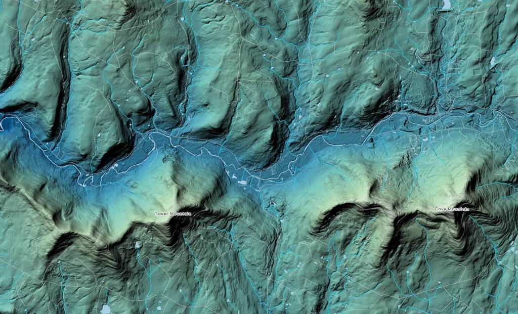I was fascinated by this post on Glacial Lake Windham by the Catskill Geologist and thought it would be ineresting to pull the LIDAR of the area.