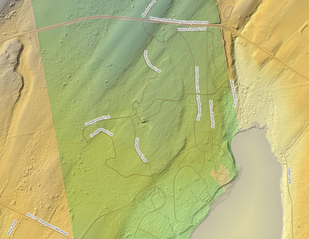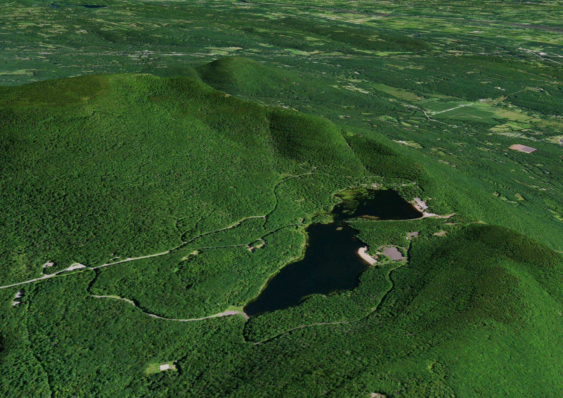North-South Lake is the biggest and most popular state campground in the Catskill Forest Preserve, offering extraordinary scenic beauty, and historical sites, such as: Alligator Rock, Kaaterskill Falls, and the former site of the Catskill Mountain House. An abrupt change in elevation occurs from about 540 feet above sea level at the base of the escarpment to approximately 2,250 feet at the site of the former Catskill Mountain House. The provinces around the lakes have long provided visitors with exceptional views of the surrounding countryside. It is said that on a clear day, five states can be viewed from the escarpment.
