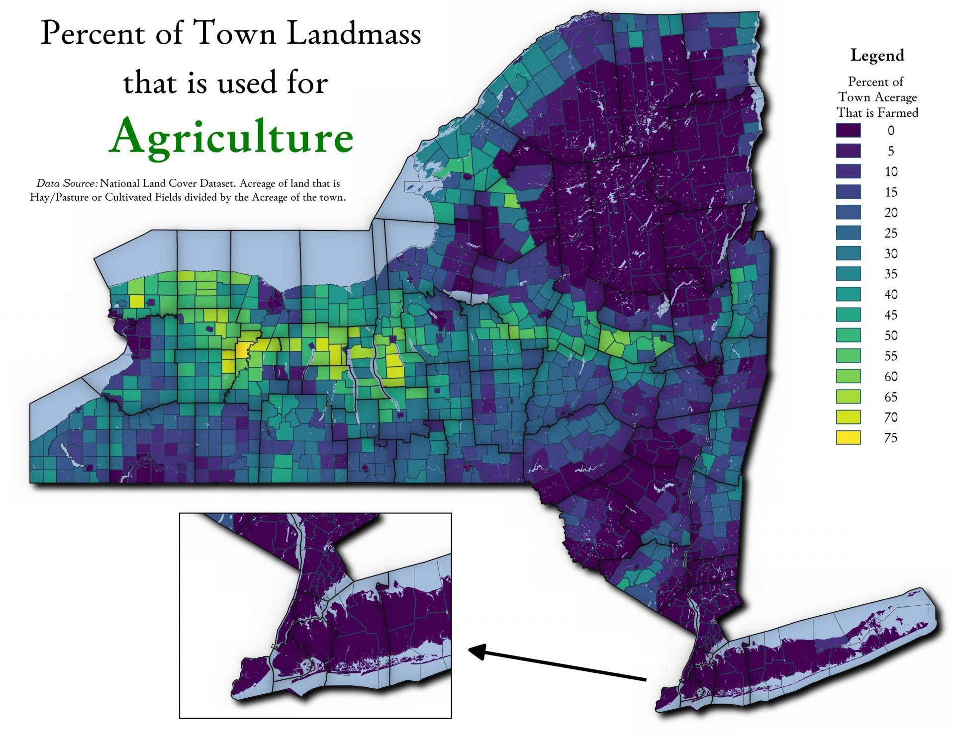 Thematic Map: Percent of Town Landmass Used for Agriculture