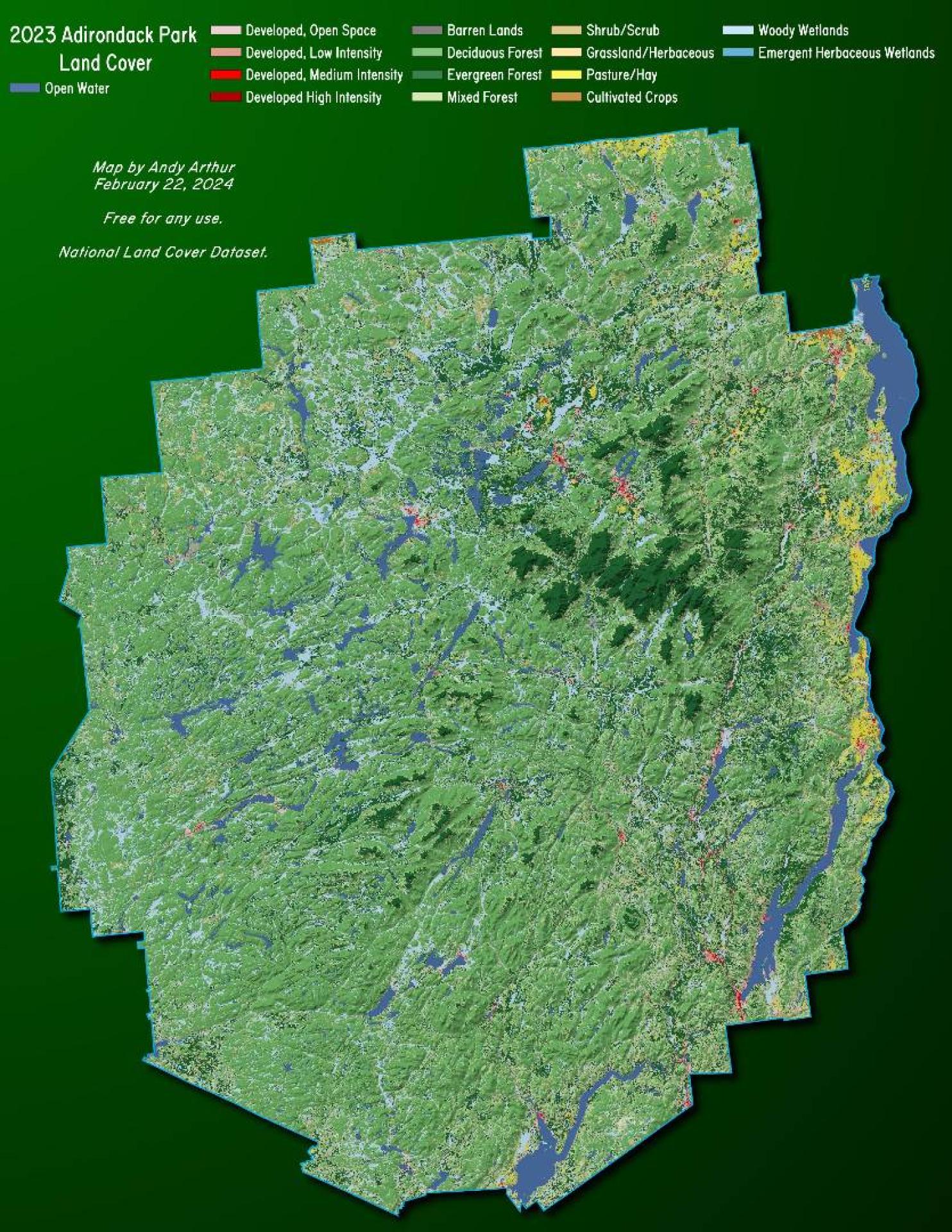 Thematic Map: 2023 National Land Cover Dataset - Adirondack Park Download a High Resolution JPEG Image of the 2023 National Land Cover Dataset - Adirondack Park or an Adobe Acrobat Printable PDF of the Thematic 2023 National Land Cover Dataset - Adirondack Park. More about Adirondack Mountains...Maps and InteractivesMODIS Aqua – September 28, 2023Jay Covered BridgeLevel 4 Ecoregions in the Adirondack ParkCatskill Park Overlaid on the Adirondack ParkAdirondack Park Wilderness AreasAdirondack Forest Preserve2023 National Land Cover Dataset – Adirondack ParkEastern NY – The Adirondacks – Green Mountains Terrian MapAdirondack Park Watershed – SubbasinsAdirondack Park of New York... photos, maps and other content from from Adirondack Mountains. Leave a Reply Cancel replyYour email address will not be published. Required fields are marked *Comment * Name * Email * Website Save my name, email, and website in this browser for the next time I comment. Δ