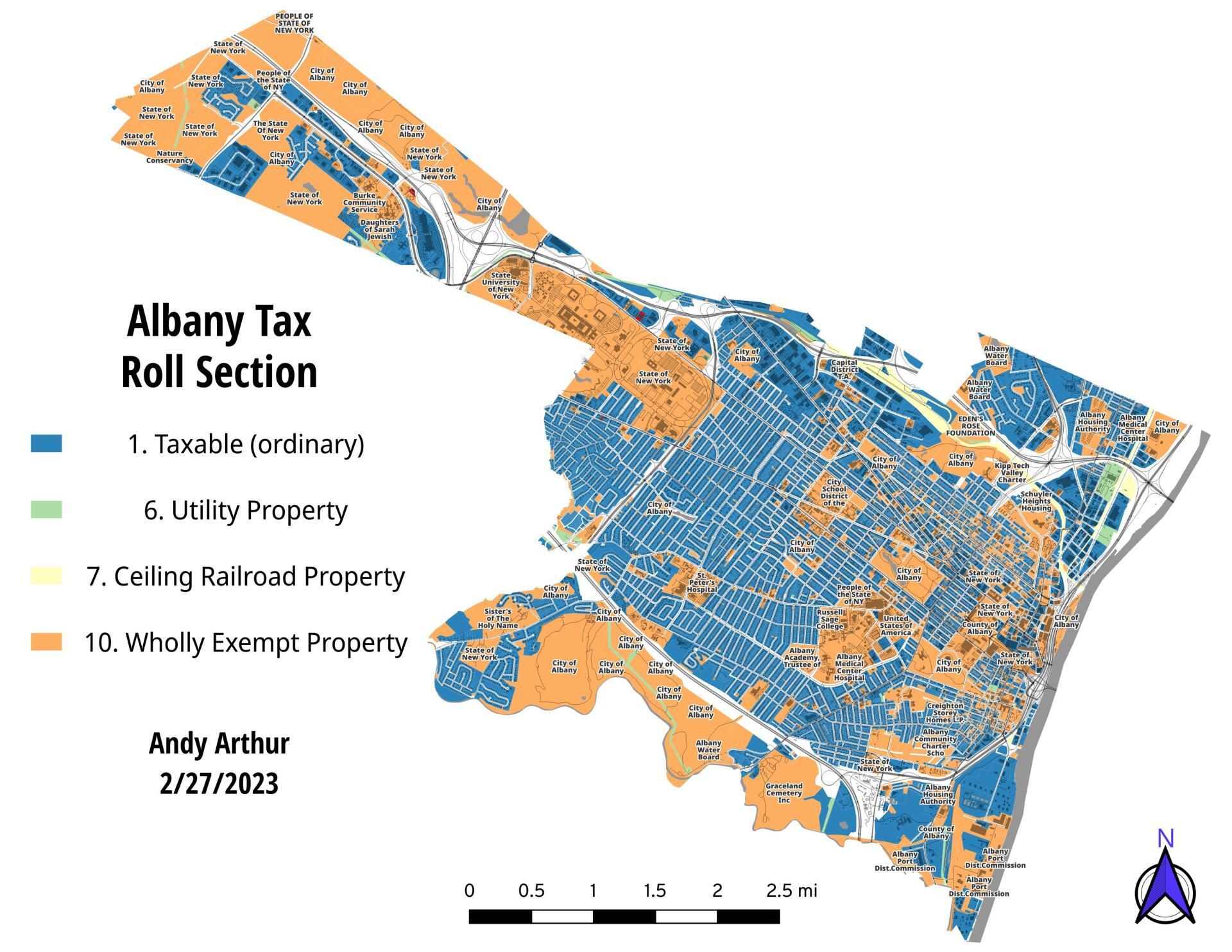 Thematic Map: Albany Tax Roll Section (Tax Exempt Properties) Download a High Resolution JPEG Image of the Albany Tax Roll Section (Tax Exempt Properties) or an Adobe Acrobat Printable PDF of the Thematic Albany Tax Roll Section (Tax Exempt Properties). About Albany Tax Roll Section (Tax Exempt Properties) .... This map shows tax exempt properties in Albany in orange color, along with other properties that exist on other parts of the tax rolls. More about Taxes...Maps and InteractivesAlbany Tax Roll Section (Tax Exempt Properties)2021 Combined Municipal and County Taxes Per $1,000 Assessed Value... photos, maps and other content from from Taxes. Leave a Reply Cancel replyYour email address will not be published. Required fields are marked *Comment * Name * Email * Website Save my name, email, and website in this browser for the next time I comment. Δ