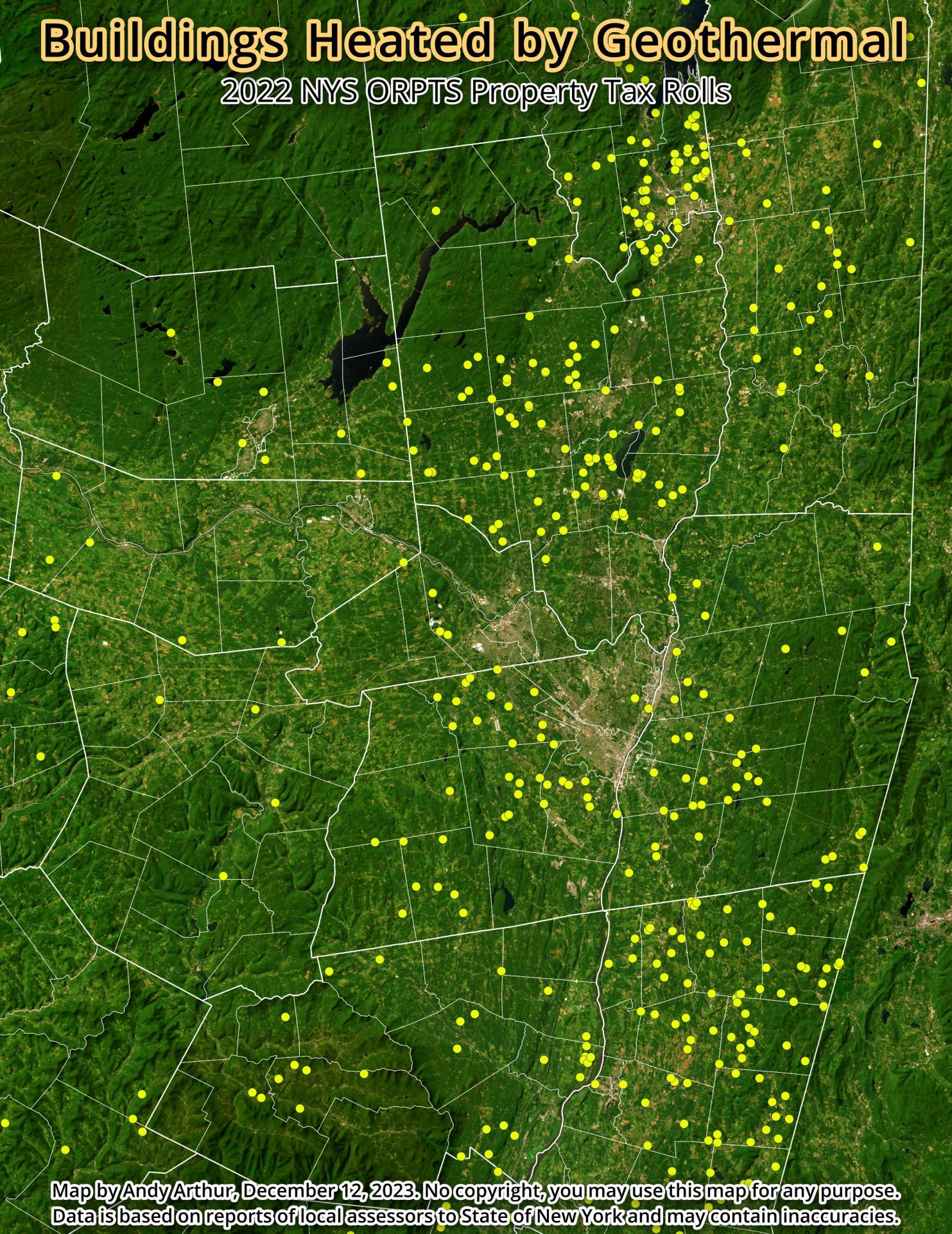 Thematic Map: Buildings Heated with Geothermal in the Capital Region Download a High Resolution JPEG Image of the Buildings Heated with Geothermal in the Capital Region or an Adobe Acrobat Printable PDF of the Thematic Buildings Heated with Geothermal in the Capital Region. More about Energy...Maps and InteractivesWarren Generating Station 1993Uranium MineUnited RefiningTerra Satellite – May 1, 2010 – Deep Water Horizon SpillStrait of Hormuz – VIIRSStrait of HormuzShepards Solar FarmPilgrim Nuclear PlantOil Wells in New York StateNature Conservancy Lands in New York StateMars Hill, MaineMajor Oil Storage FacilitiesLittle Blue Run LakeLindytown Coal MineJohn E. Amos Power PlantHydrofracked Natural Gas Well, versus Empire PlazaHouses with Coal Heat in the Southern TierHartsfield Ferry Coal PlantHarford Mills Brine Storage PondsHancock Shaker Village Surrounded by Industrial Solar FacilitiesGrandview Wind FarmGina Nuclear Plant βDG Bethlehem Solar West – A One Megawatt Industrial Solar FacilityCoeymans Solar FarmCoal mining, Southern Ohio... photos, maps and other content from from Energy. Leave a Reply Cancel replyYour email address will not be published. Required fields are marked *Comment * Name * Email * Website Save my name, email, and website in this browser for the next time I comment. Δ
