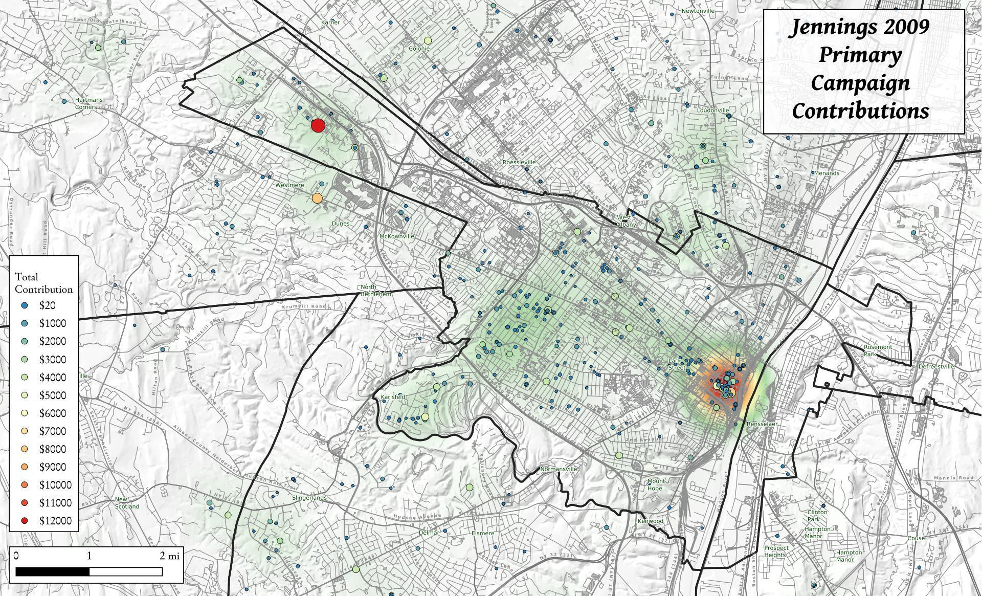 Thematic Map: Gerald Jennings 2009 Primary Campaign Contributions