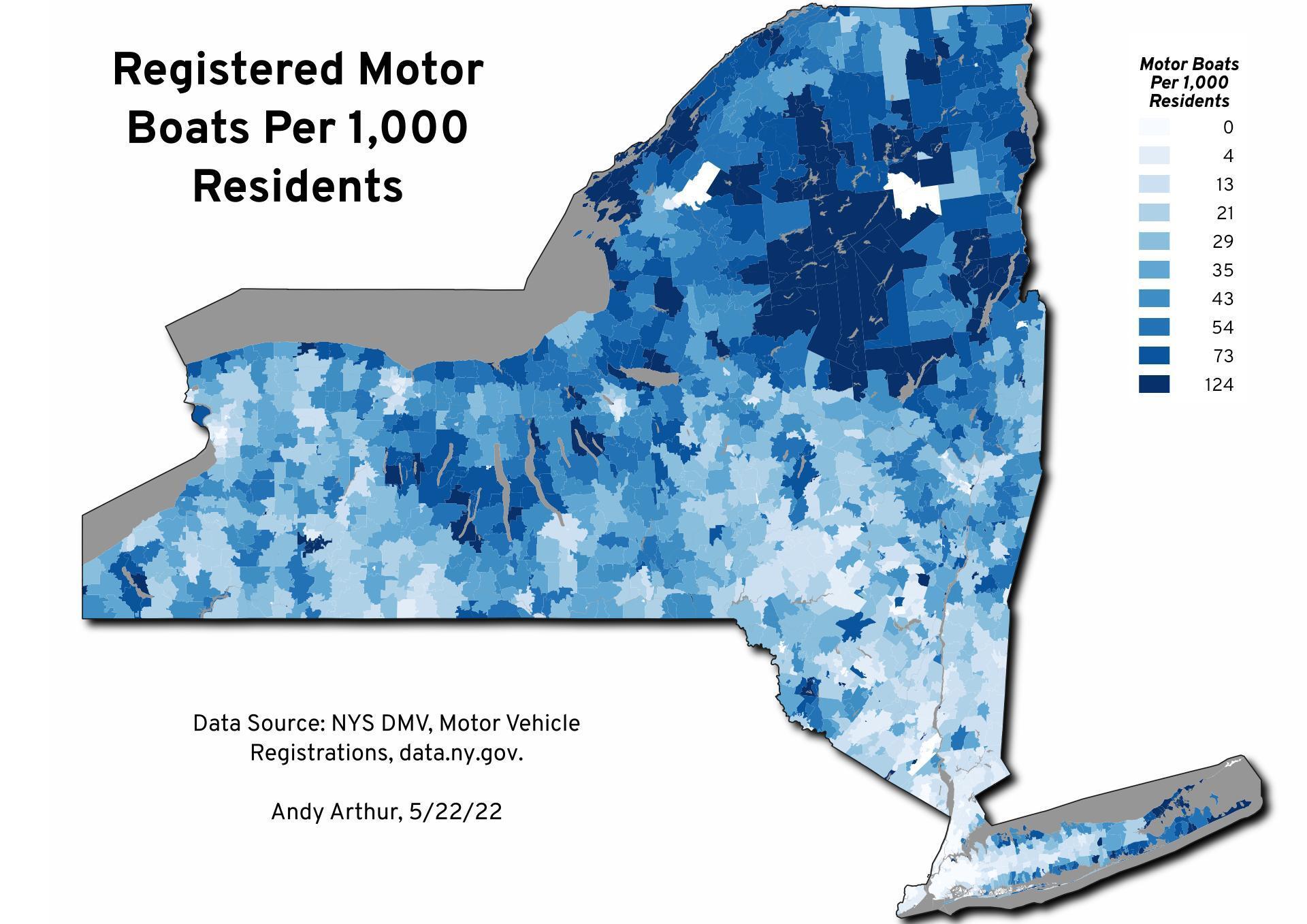 Thematic Map: Motor Boats per 1,000 Residents Download a High Resolution JPEG Image of the Motor Boats per 1,000 Residents or an Adobe Acrobat Printable PDF of the Thematic Motor Boats per 1,000 Residents. More about Waterbodies...Maps and InteractivesThe Lake Erie “Crack” on Sunday February 8, 2026Lake Erie – MODIS Aqua February 4, 2026Harmful Algea Blooms in New YorkChicago Sanitary and Ship CanalCapsan SeaAlbany Wastewater FacilitiesThe Great LakesSusquehanna WatershedMotor Boats per 1,000 ResidentsLocal Names for Brooks, Creeks, Kills, Rivers, Runs and Streams... photos, maps and other content from from Waterbodies. Leave a Reply Cancel replyYour email address will not be published. Required fields are marked *Comment * Name * Email * Website Save my name, email, and website in this browser for the next time I comment. Δ