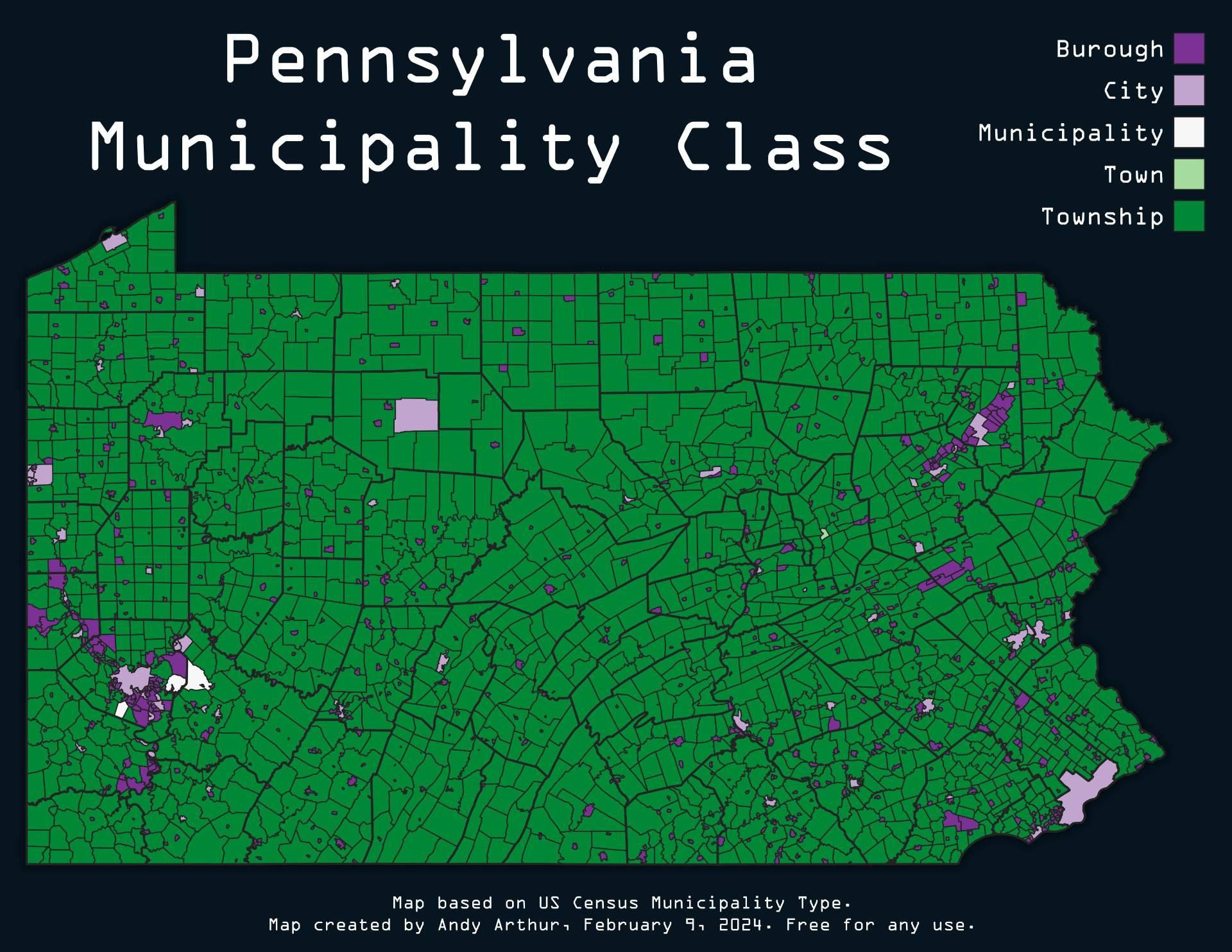 Download a High Resolution JPEG Image of the Pennsylvania Municipality Type or an Adobe Acrobat Printable PDF of the Thematic Pennsylvania Municipality Type.